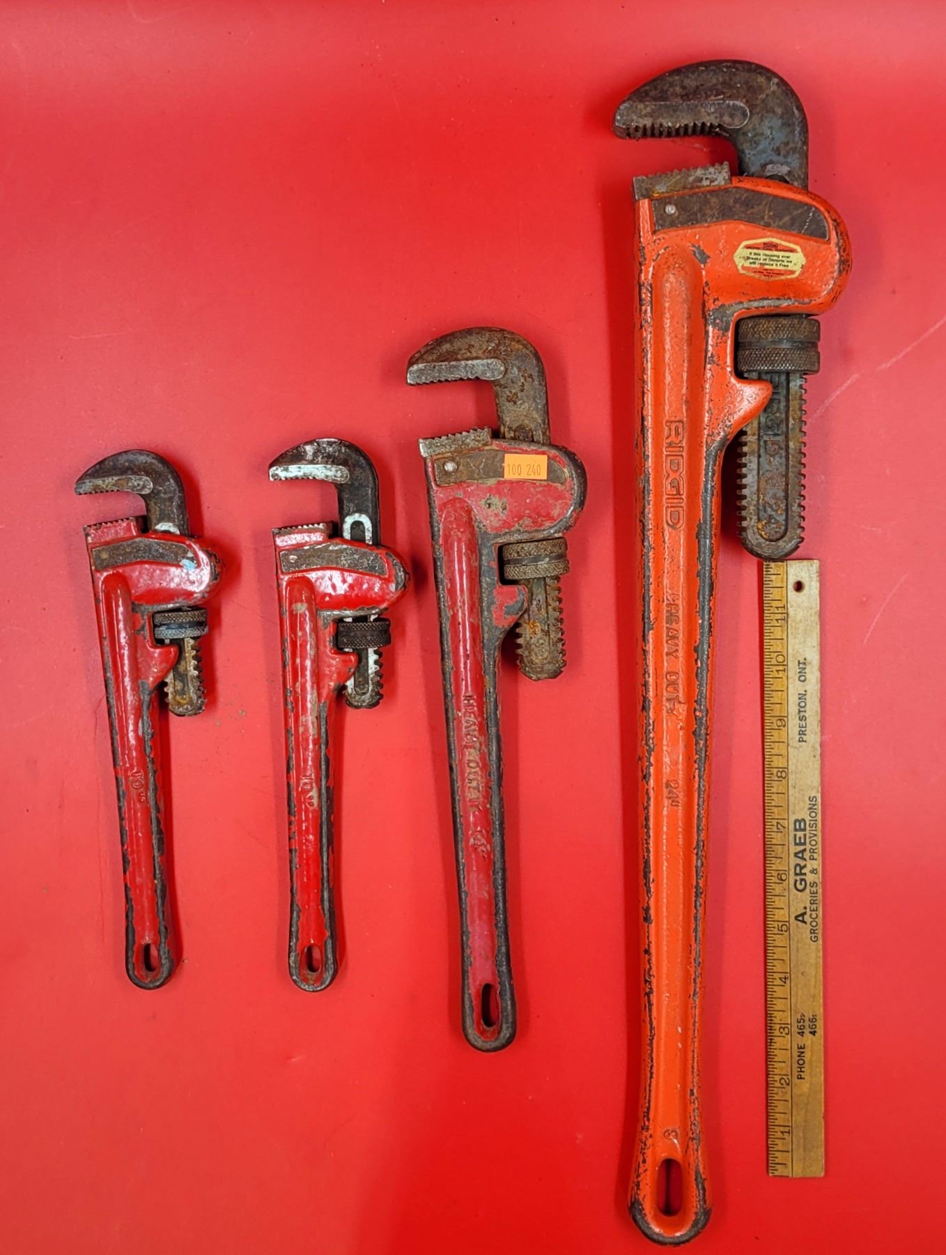 4 Assorted Size Pipe Wrenches (Ridgid, etc.)