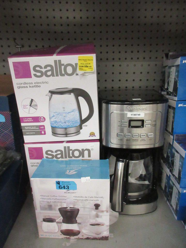 Cuisinart coffee maker, MLMLANT manual coffee grinder & 2 Salton electric kettles