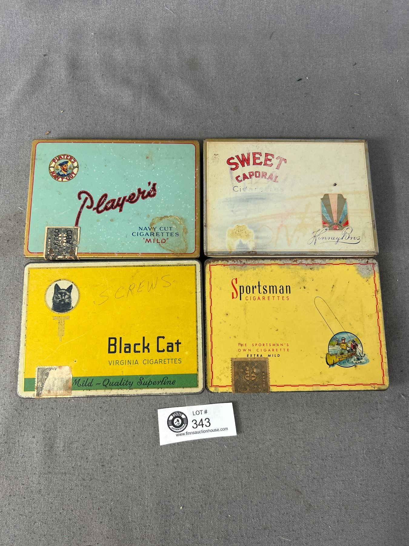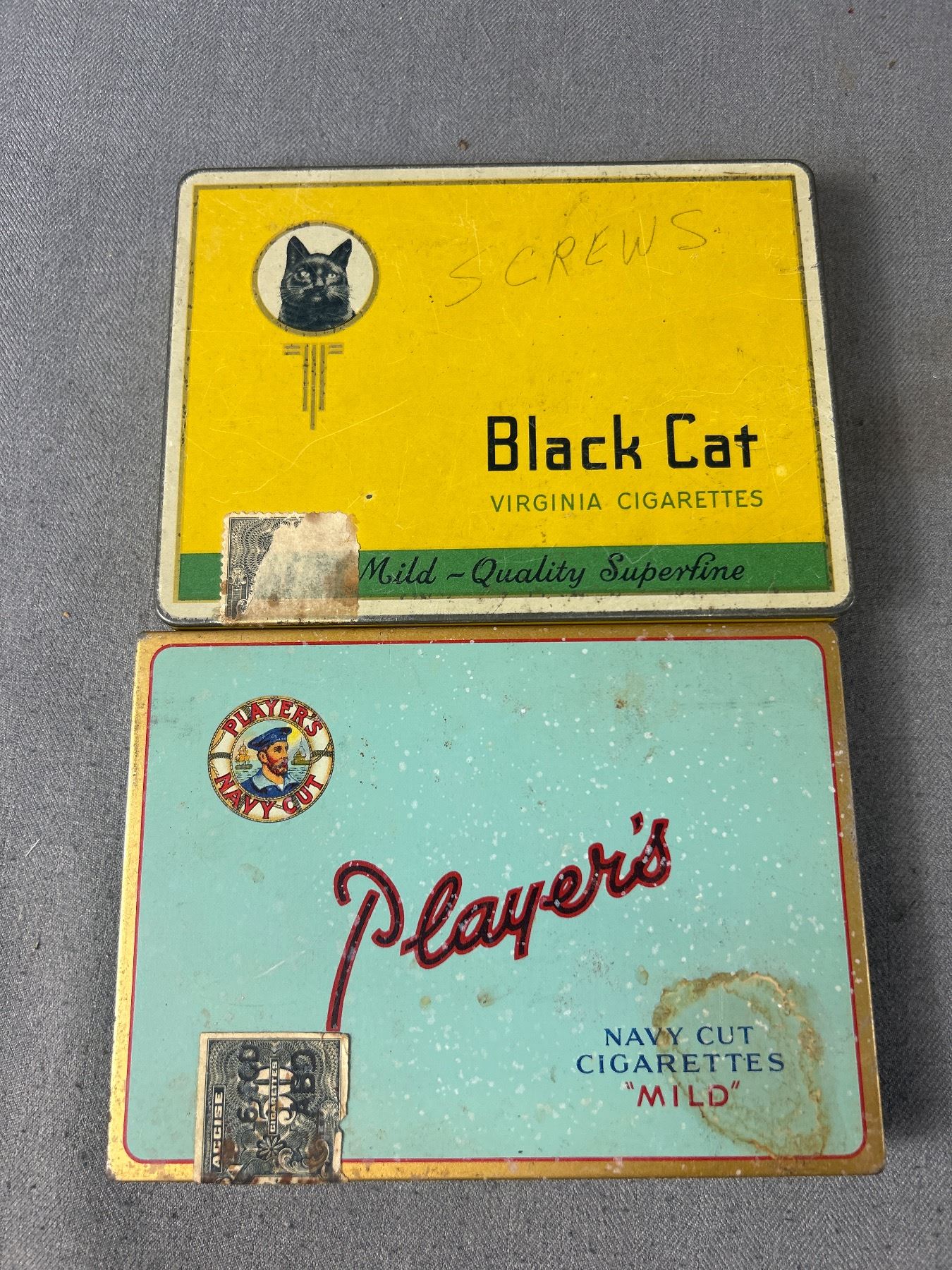 4 Assorted Vintage Cigarettes Tins - Black Cat, Players & More