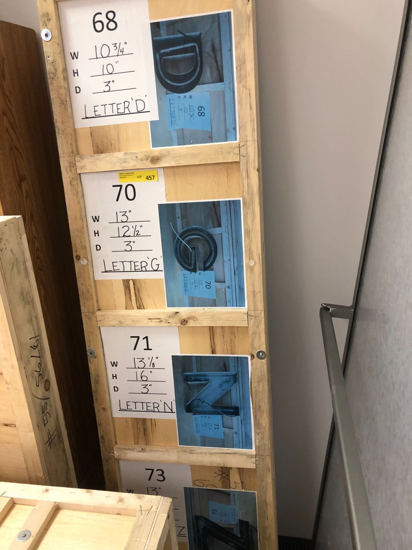 4 Assorted neon letter signs - D/G/N/Z crated in wood (dimensions show in photo) from sci-fi show