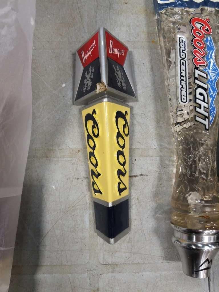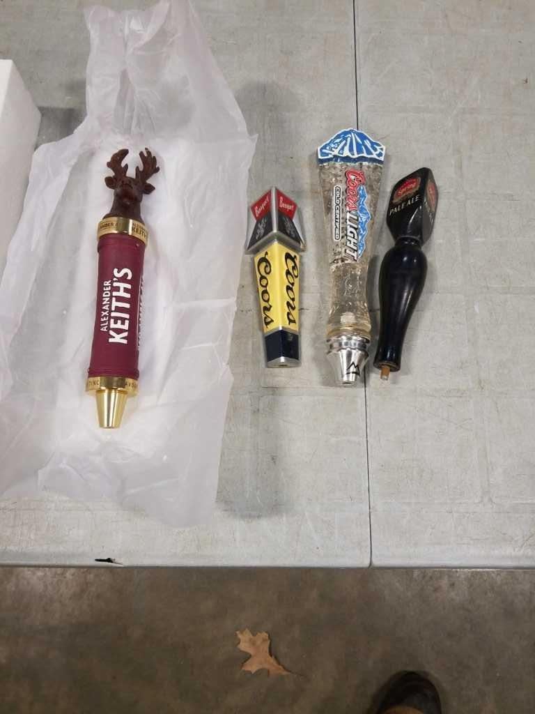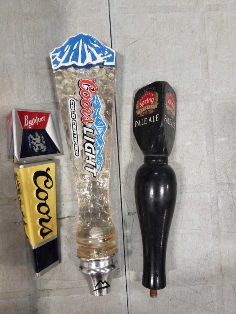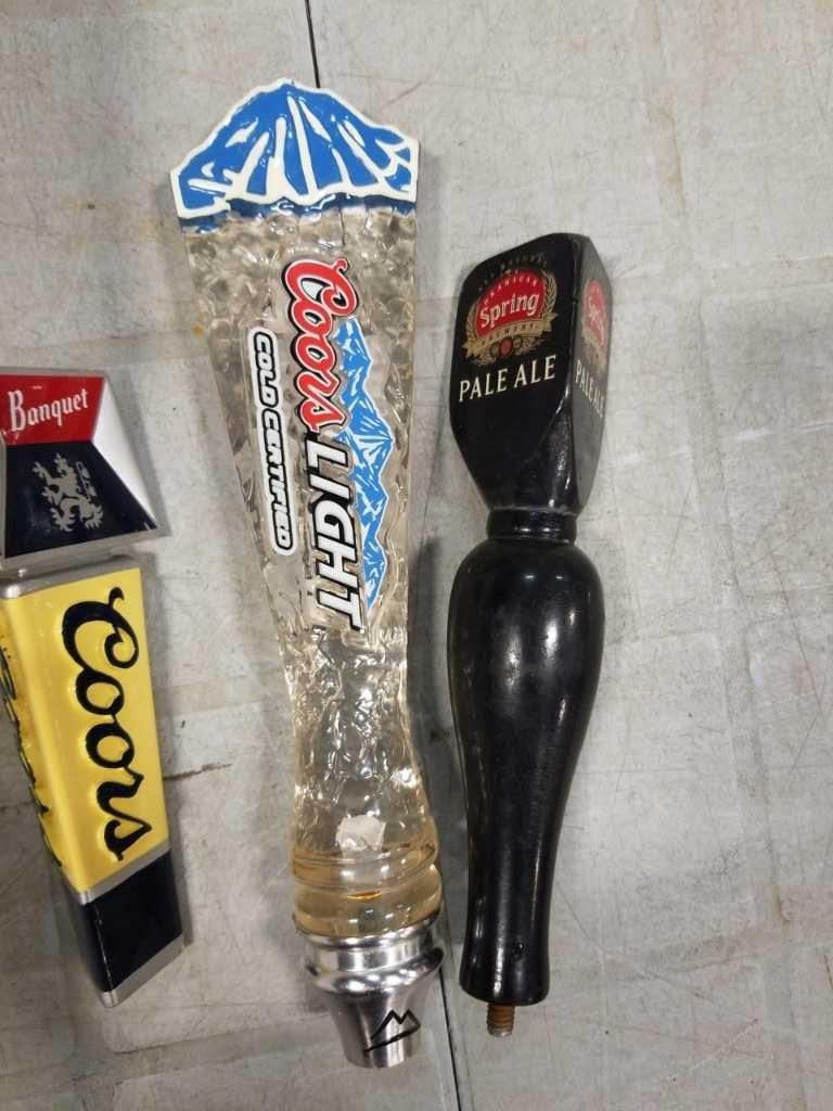 4 BEER TAP HANDLES - KEITHS RED, COORS, COORS LIGHT AND OKANAGAN SPRING