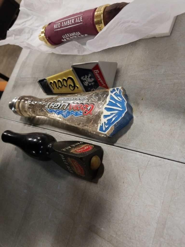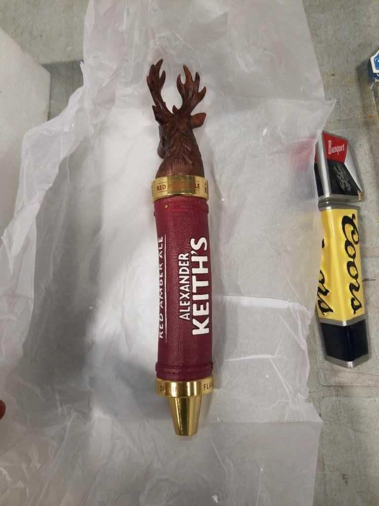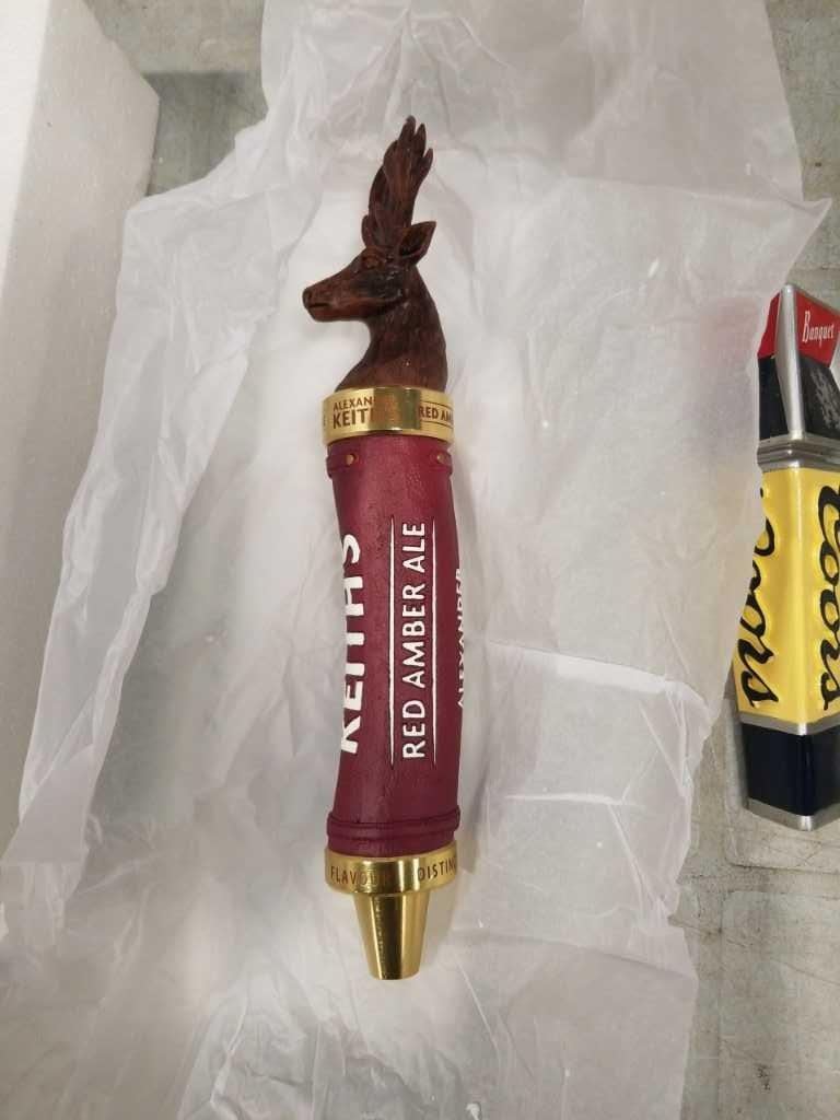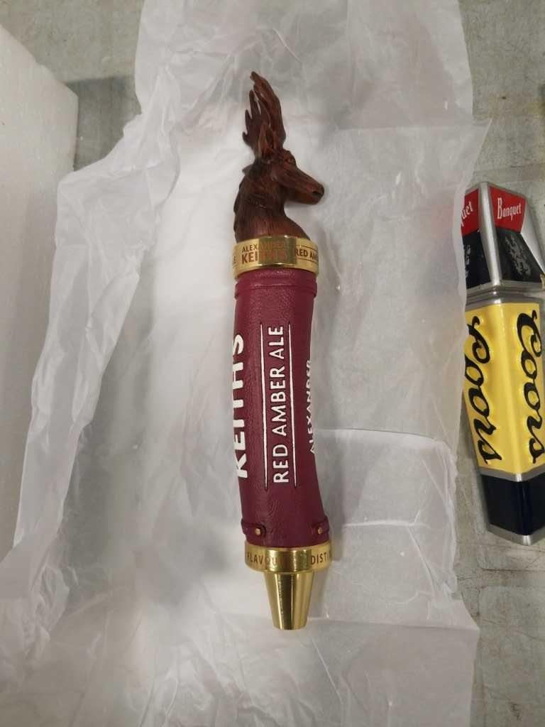 4 BEER TAP HANDLES - KEITHS RED, COORS, COORS LIGHT AND OKANAGAN SPRING