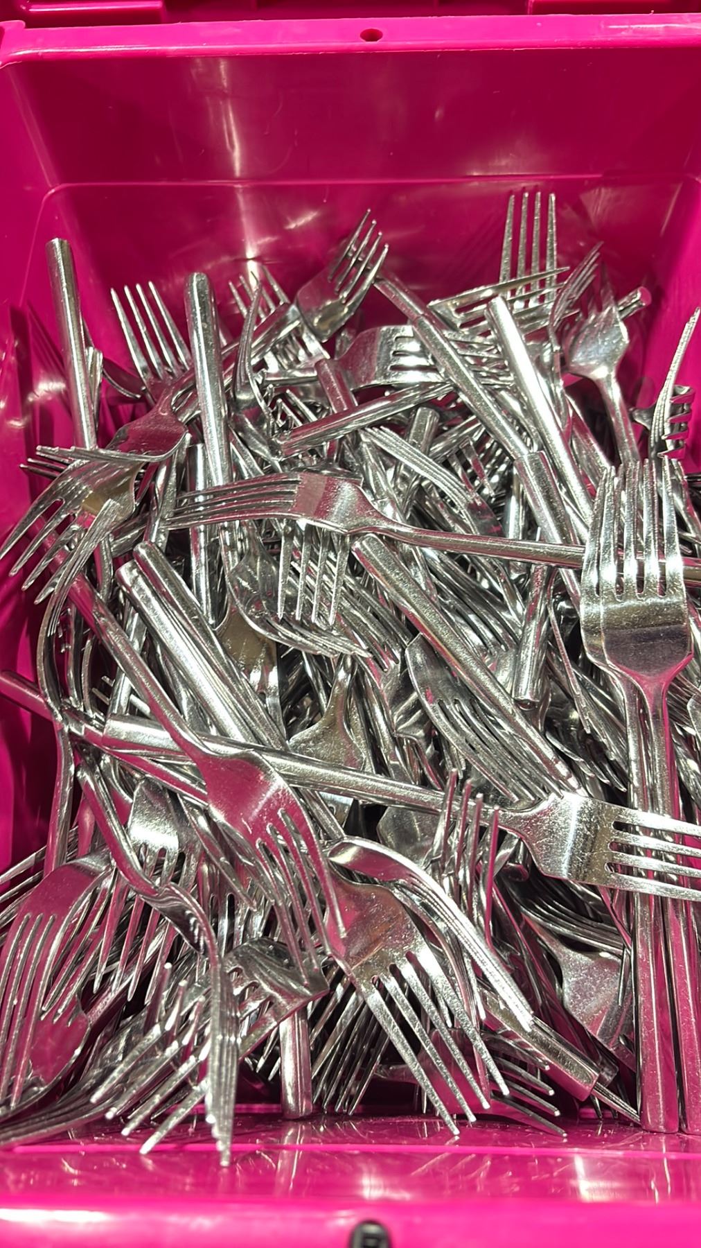 4 BINS OF STAINLESS STEEL SQUARE ENDED FORKS *BINS INCLUDED*