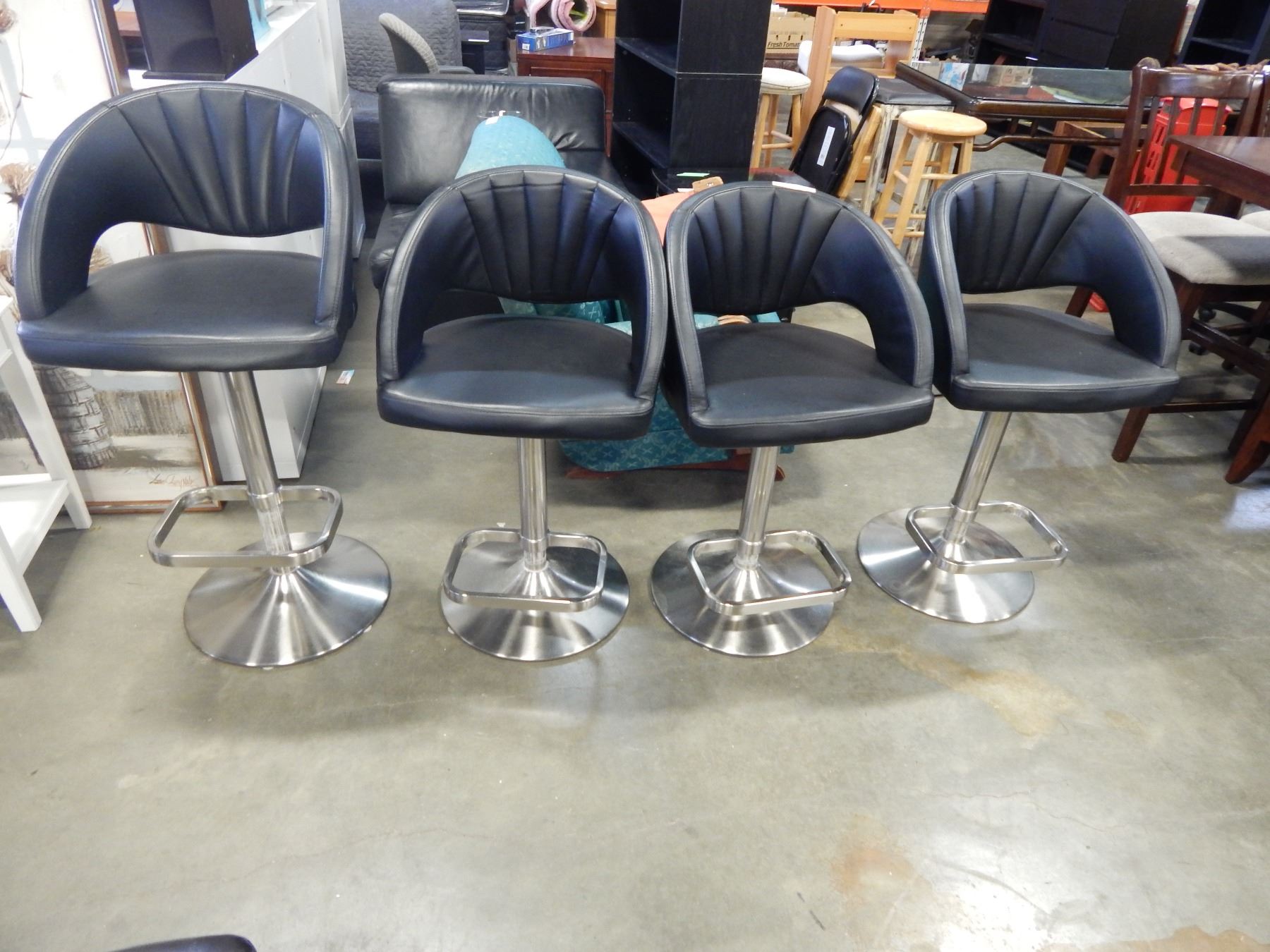 4 BLACK LEATHER BRUSHED METAL GAS LIFT BAR STOOLS