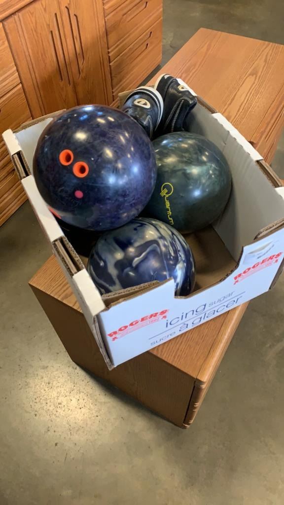 4 BOWLING BALLS AND BOWLING SHOES