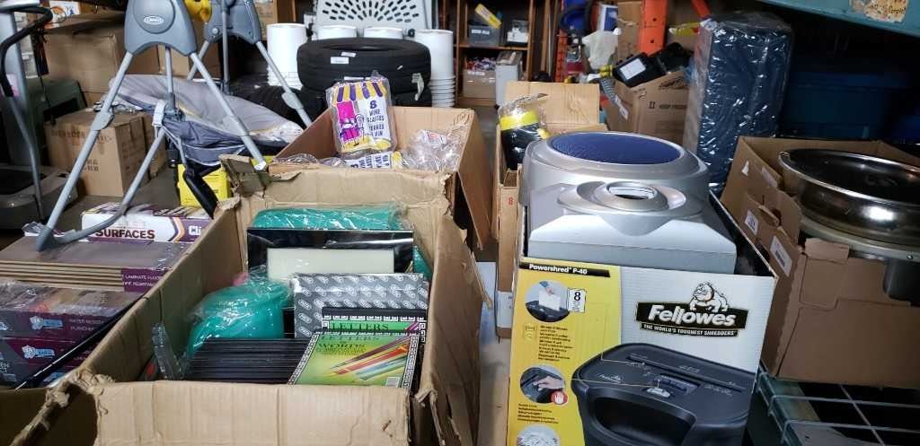 4 BOXES OF DISPOSABLE PLASTIC CUPS, FLASHLIGHTS, PICTURE FRAMES, SPEAKERS
