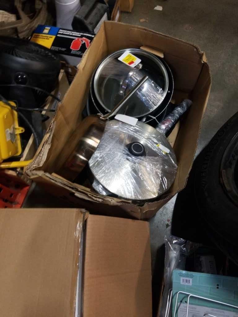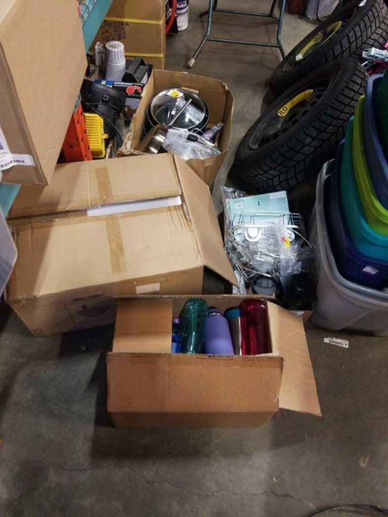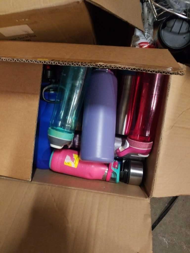 4 BOXES OF KITCHEN ITEMS, WATER BOTTLES, SINK