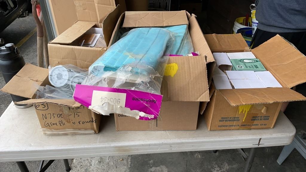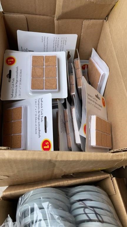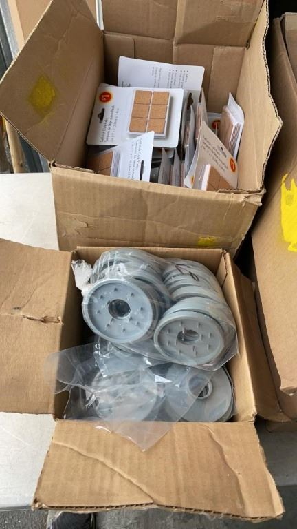 4 BOXES OF LIGHTBULBS, SHOP VAC BAGS, SELF STICK CORK PADS AND PARTS