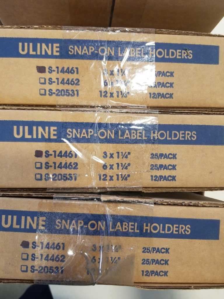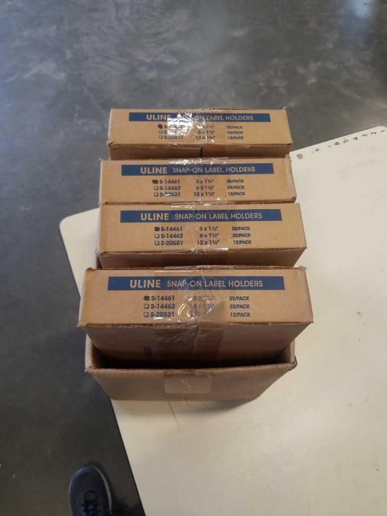4 BOXES OF NEW ULINE RETAIL SNAP ON LABEL HOLDERS