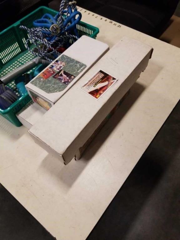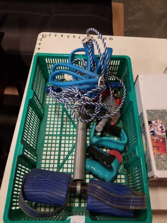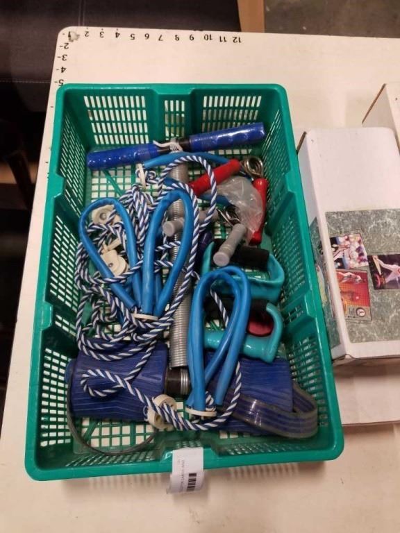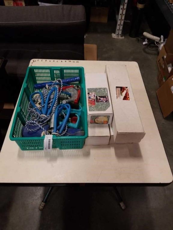 4 BOXES SPORTS COLLECTOR CARDS AND JUMPROPES, EXERCISE ITEMS