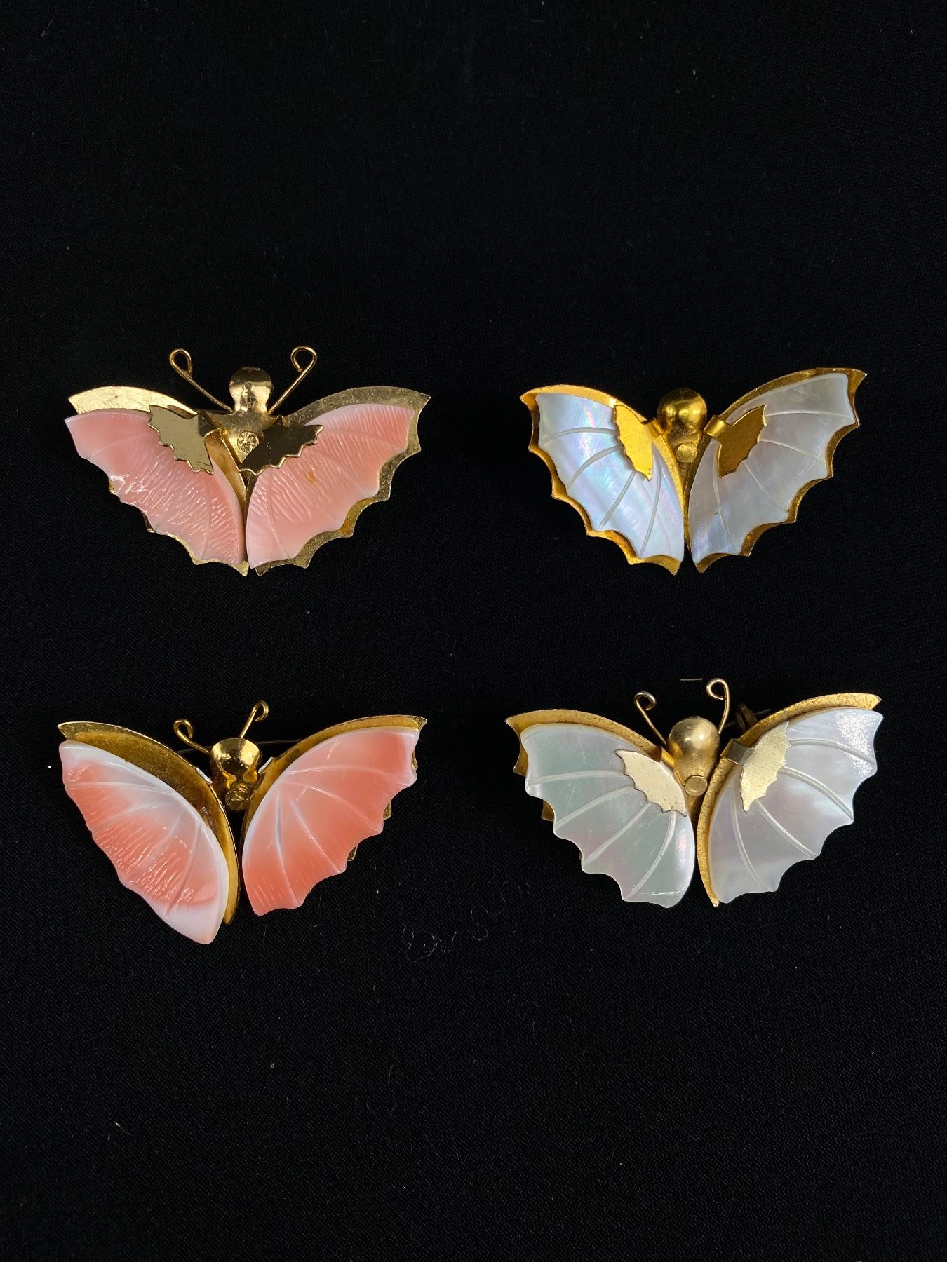 4 Beautiful Vintage Mother of Pearl Butterfly Brooches