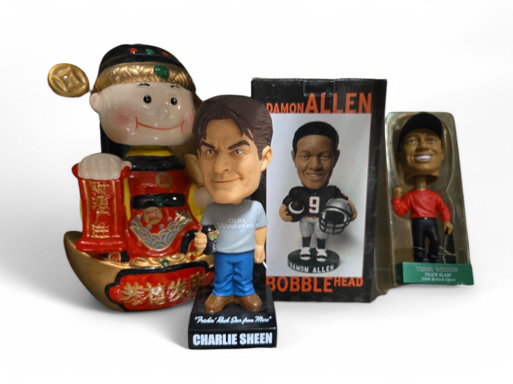 4 Bobble Heads: Charlie Sheen, Damon Allen, Tiger Woods, & More