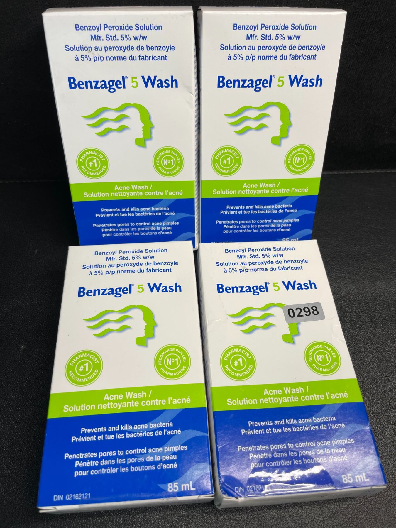 - Benzagel Acne Wash is a topical treatment for uncomplicated facial acne as well as acne vulgaris. It contains 5% Benzoyl Peroxide, in a unique formulation that is micronized (reduced to tiny particles) to effectively penetrate the skill and kill the bacteria that causes acne inflammation. It helps prevent new pimples from forming, allowing the skin to heal.