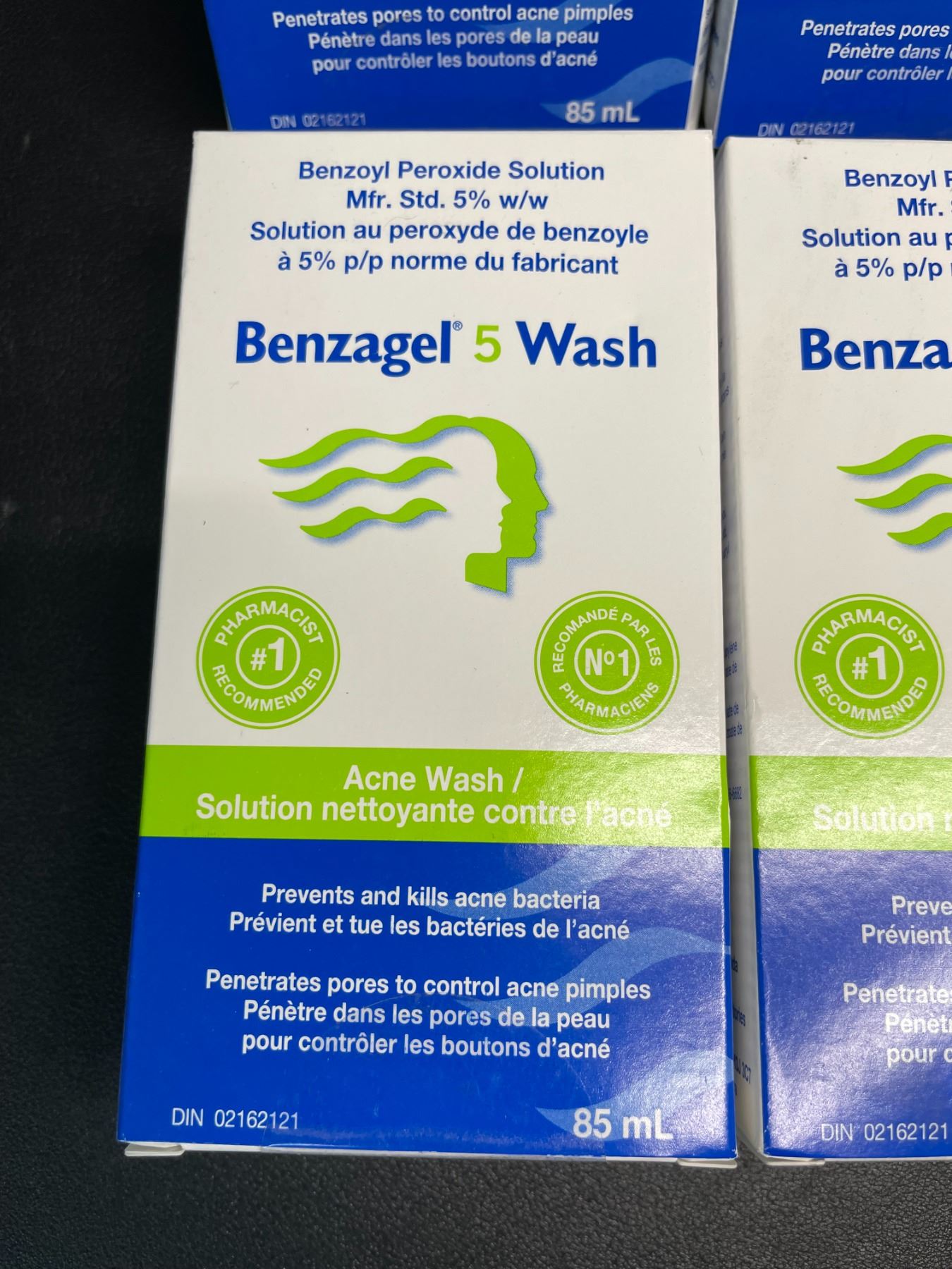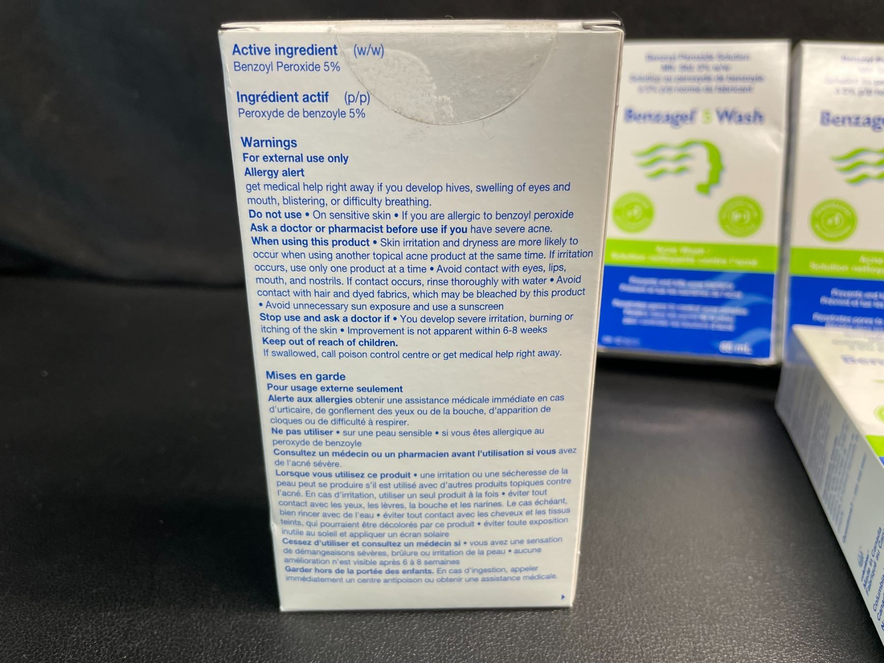 - Benzagel Acne Wash is a topical treatment for uncomplicated facial acne as well as acne vulgaris. It contains 5% Benzoyl Peroxide, in a unique formulation that is micronized (reduced to tiny particles) to effectively penetrate the skill and kill the bacteria that causes acne inflammation. It helps prevent new pimples from forming, allowing the skin to heal.