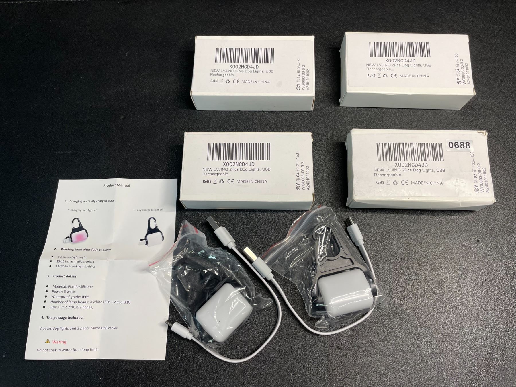 4 Boxes of Dog Lights/Clip-On Collar Lights for Dogs/Cats (2 Per Pack/8 Total) USB Rechargeable; New