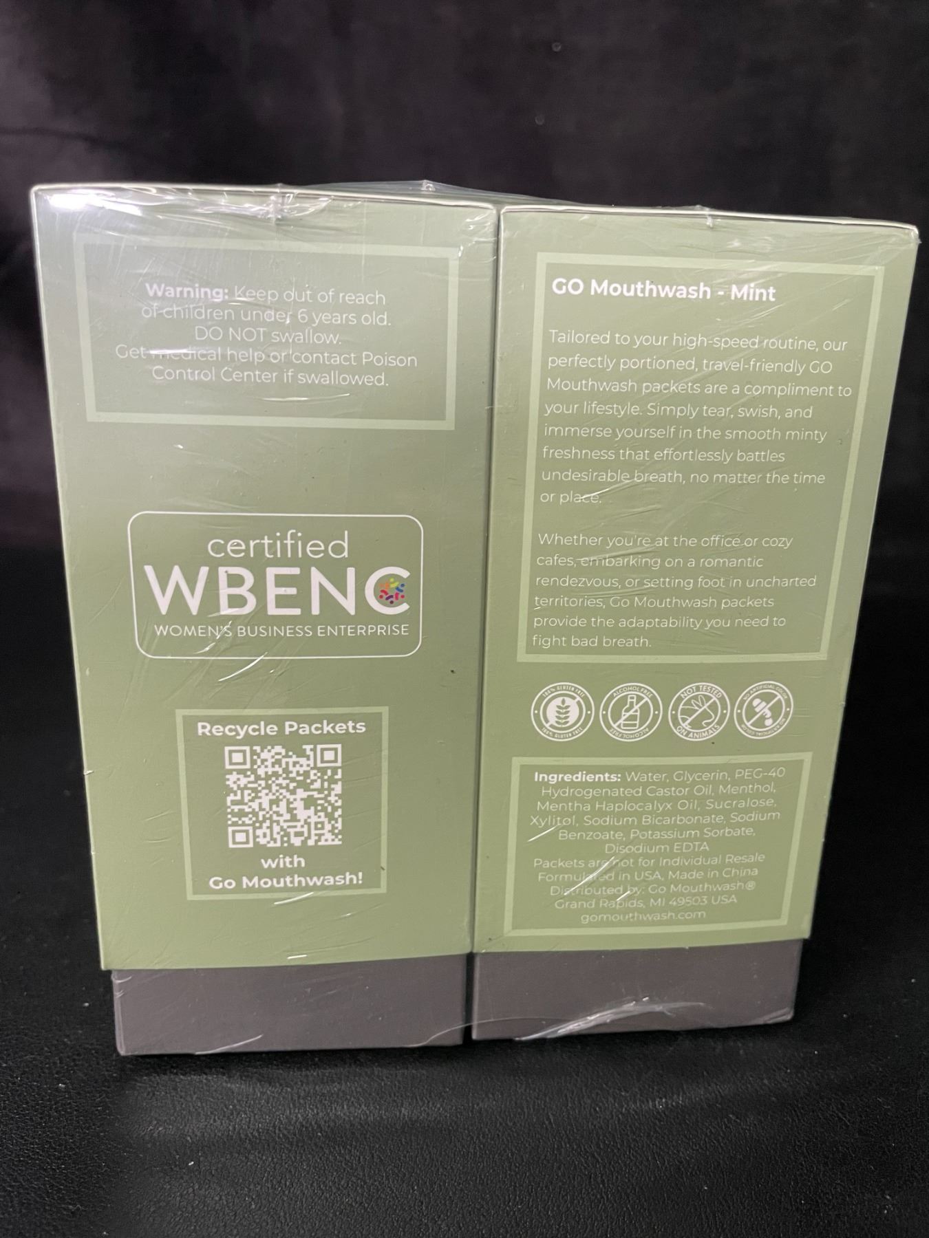 - GO Mouthwash - individual packets that are portable size. Travel mouthwash that freshens breath conveniently. Mint-flavored single-unit mouthwash. 80 individual stick packets. (Contains 4 boxes of 20 packets each - 80 Packets Total)