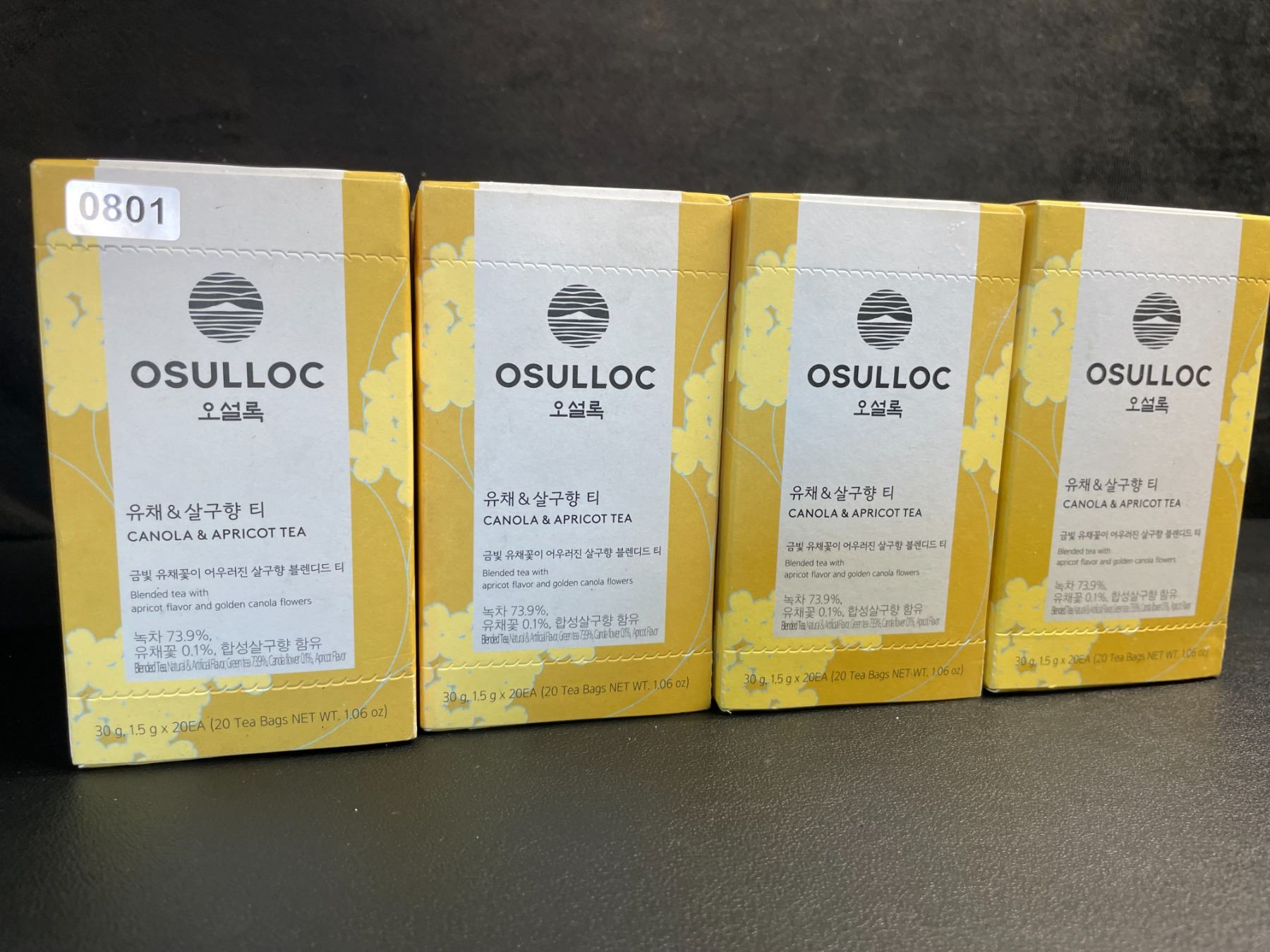 4 Boxes of OSULLOC Canola & Apricot Tea (30g) 20 Tea Bags Each - New