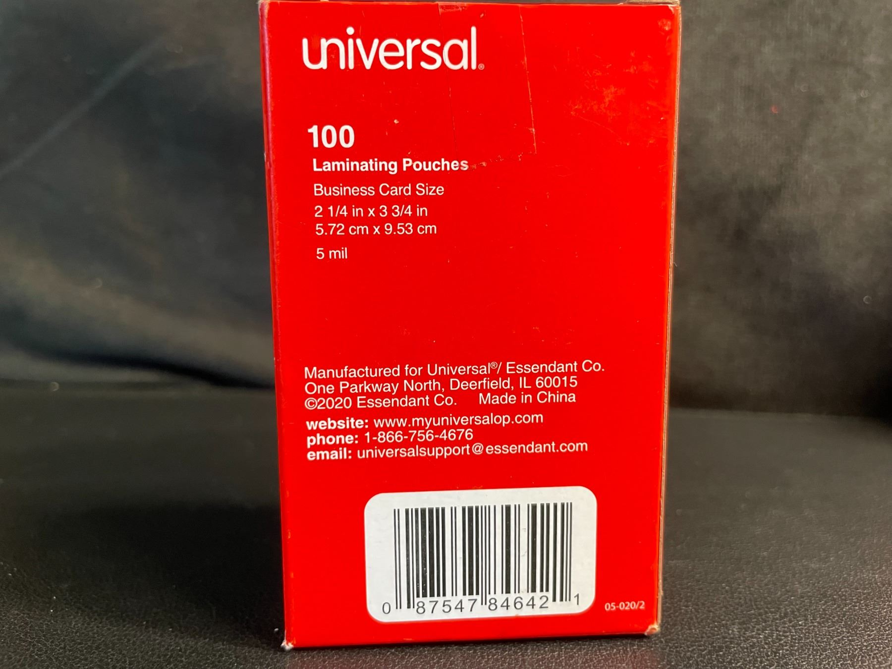 - universal laminating pouches (business card size) 2 1/4in x 3 3/4in size