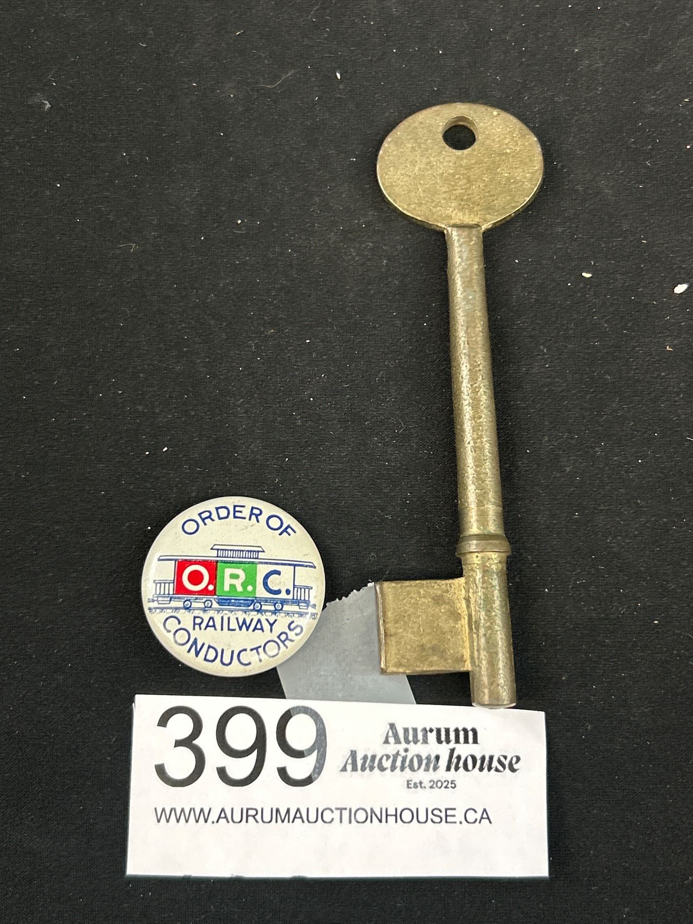 4" Brass Railway Key + Conductors Badge