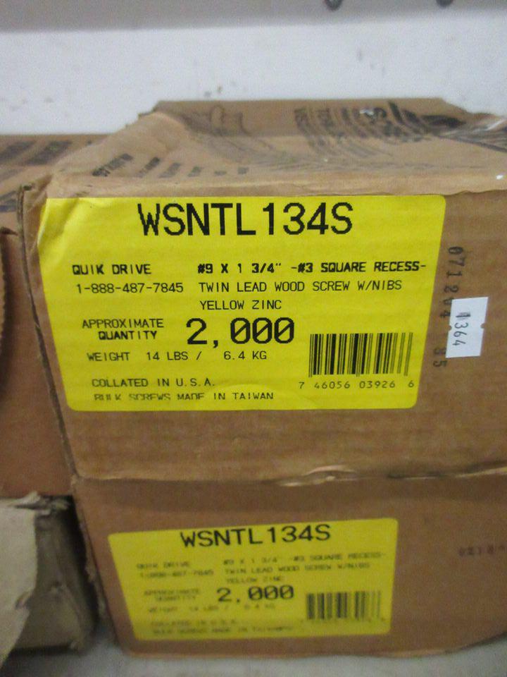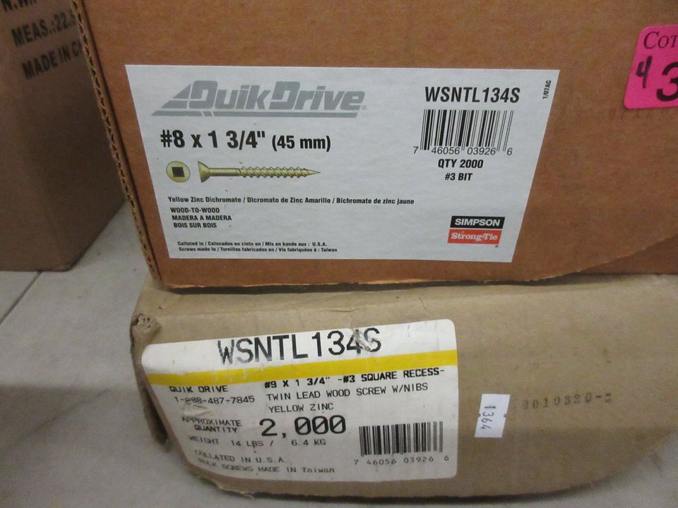 3 Boxes of Quik Drive #9 x 1-3/4 x #3 Square Recessed Wood Screws, and 1 box of #8 x 1-3/4 Wood to Wood screws.