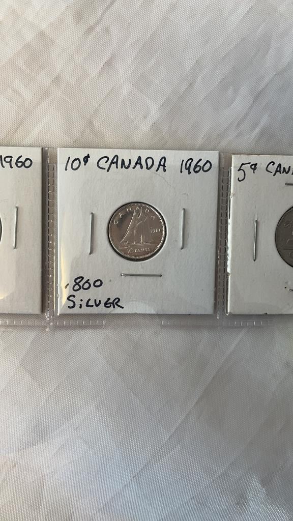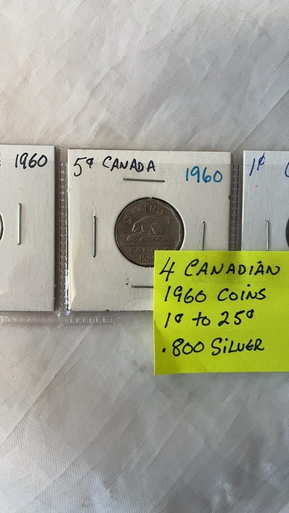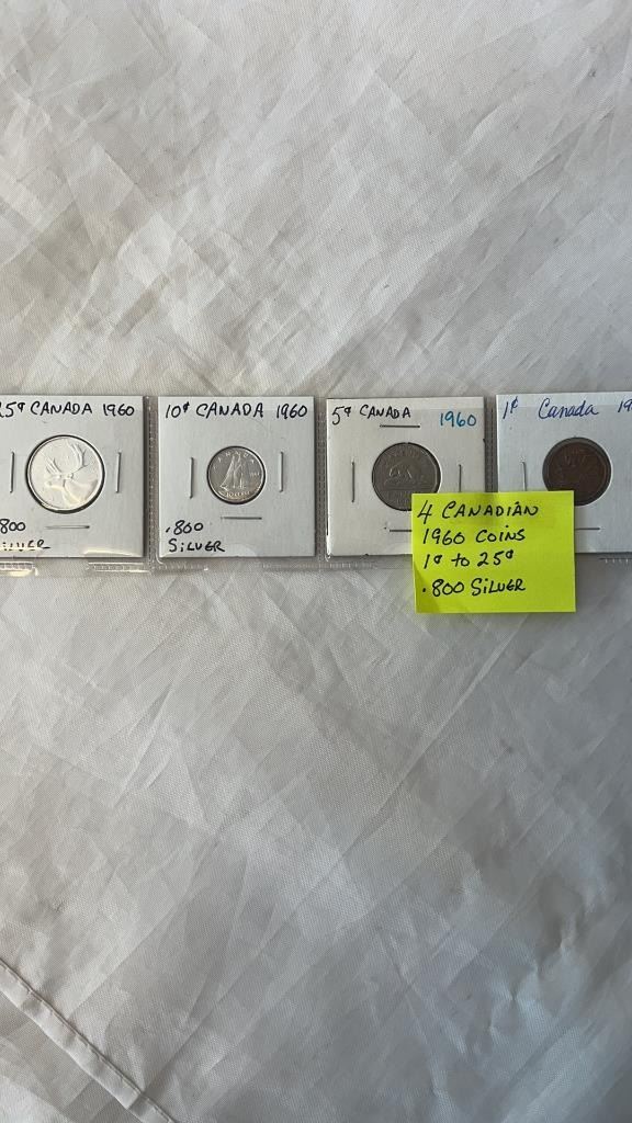 4 CANADIAN 1960 COINS 1 CENT TO 25 CENT .800 SILVER