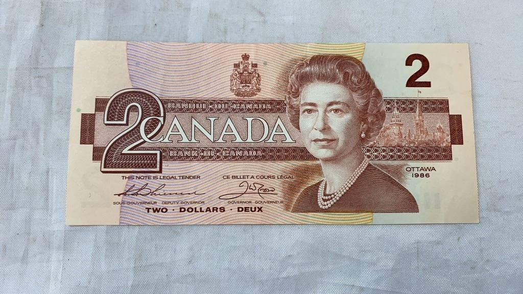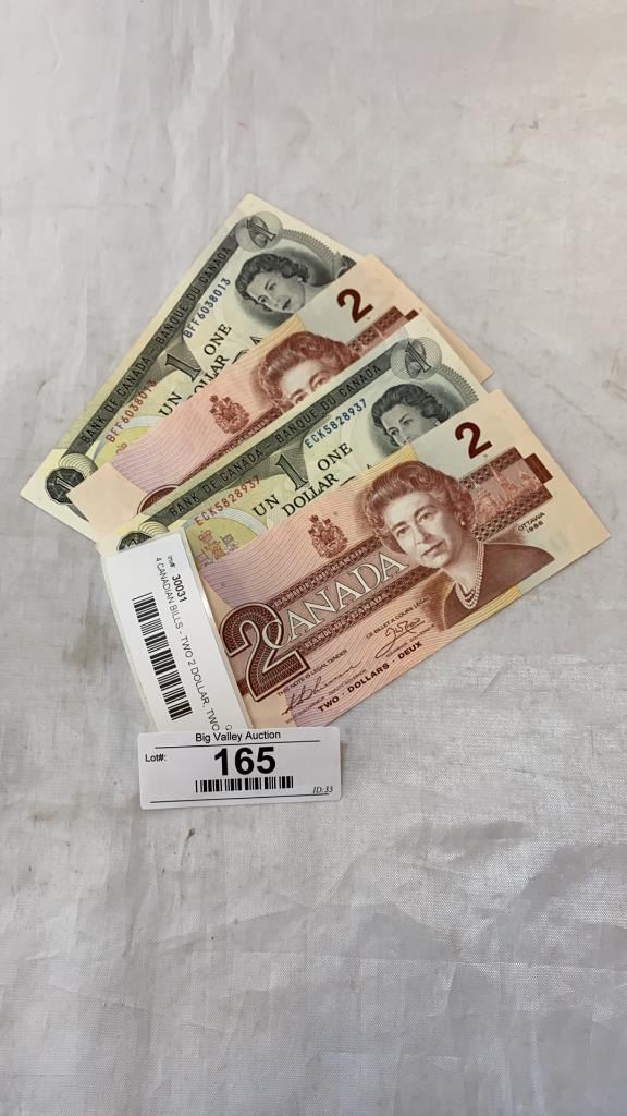 4 CANADIAN BILLS - TWO 2 DOLLAR 1986, TWO 1 DOLLAR 1973