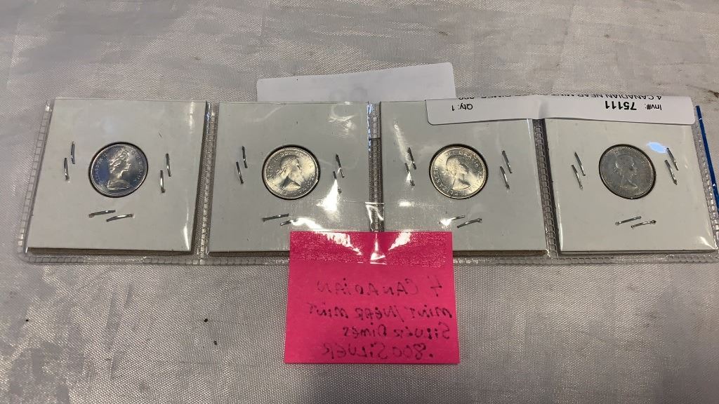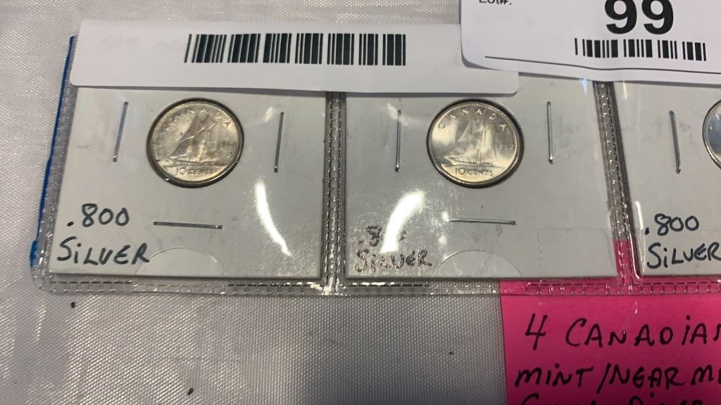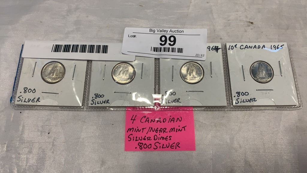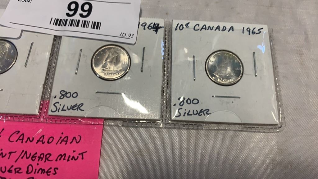 4 CANADIAN NEAR MINT SILVER DIMES .800 SILVER