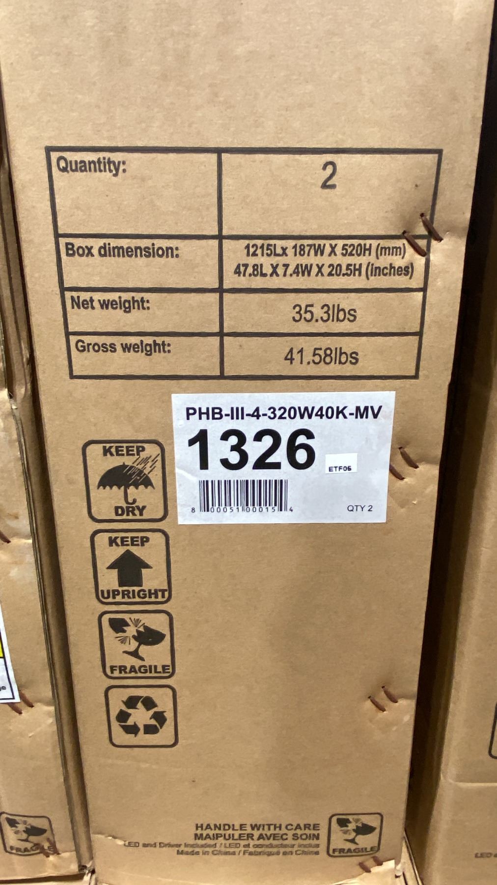 4 CASES OF EE LIGHTING PHB-III-4-320W40K-MV PHB HIGH PERFORMANCE LED HIGH BAY III LIGHTS (1326) * 2 PER CASE *