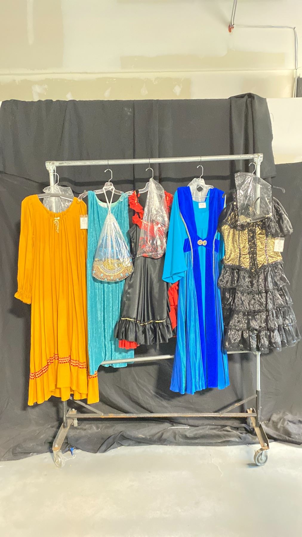 4 COSTUMES INCLUDING 1800'S DRESS, 1400'S DRESS SPANISH DRESS & MORE