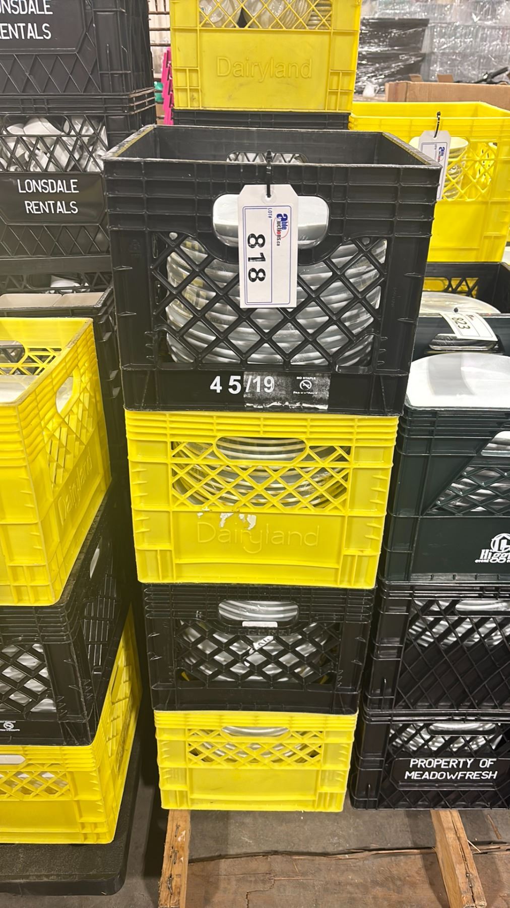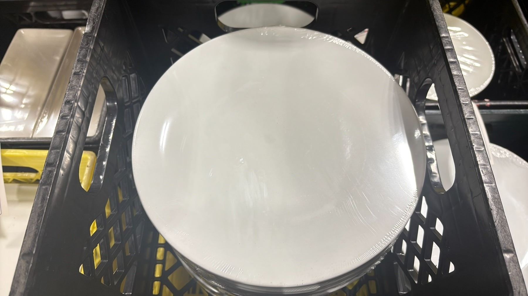 4 CRATES OF WHITE 11" COMMERCIAL RESTAURANT DINNER PLATES *CRATES INCLUDED* ( APPROX. 15 PLATES PER CRATE, 60 PLATES TOTAL )