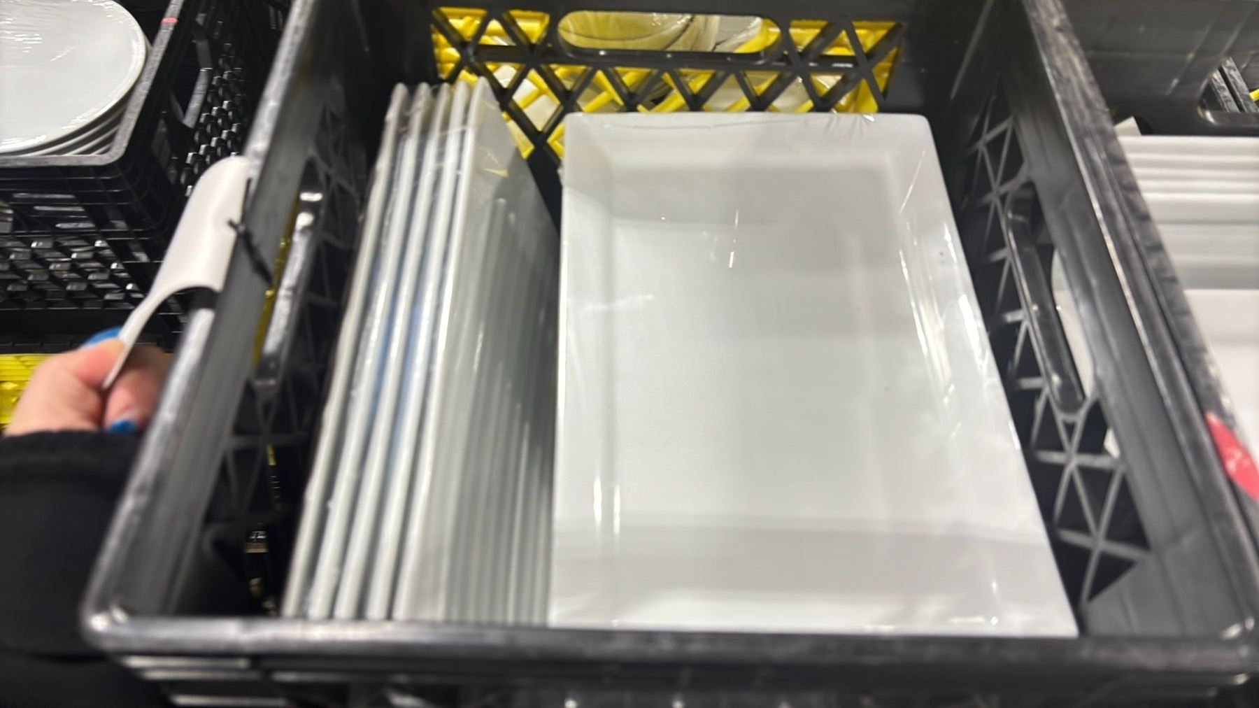 4 CRATES OF WHITE 12" COMMERCIAL RESTAURANT RECTANGULAR PLATES *CRATES INCLUDED* ( APPROX. 20 PLATES PER CRATE, 80 PLATES TOTAL )