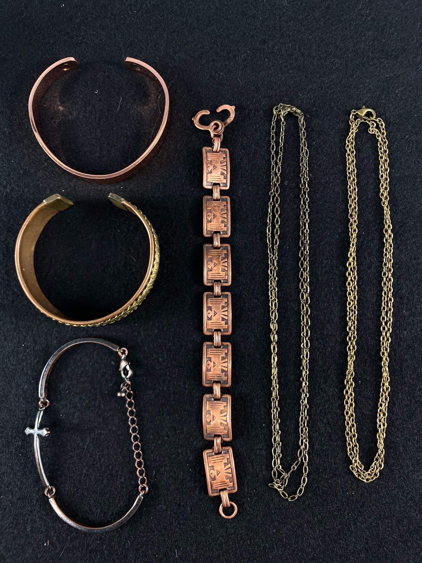 4 Copper Bracelets & 2 Chain Necklaces (28  & 30 )
