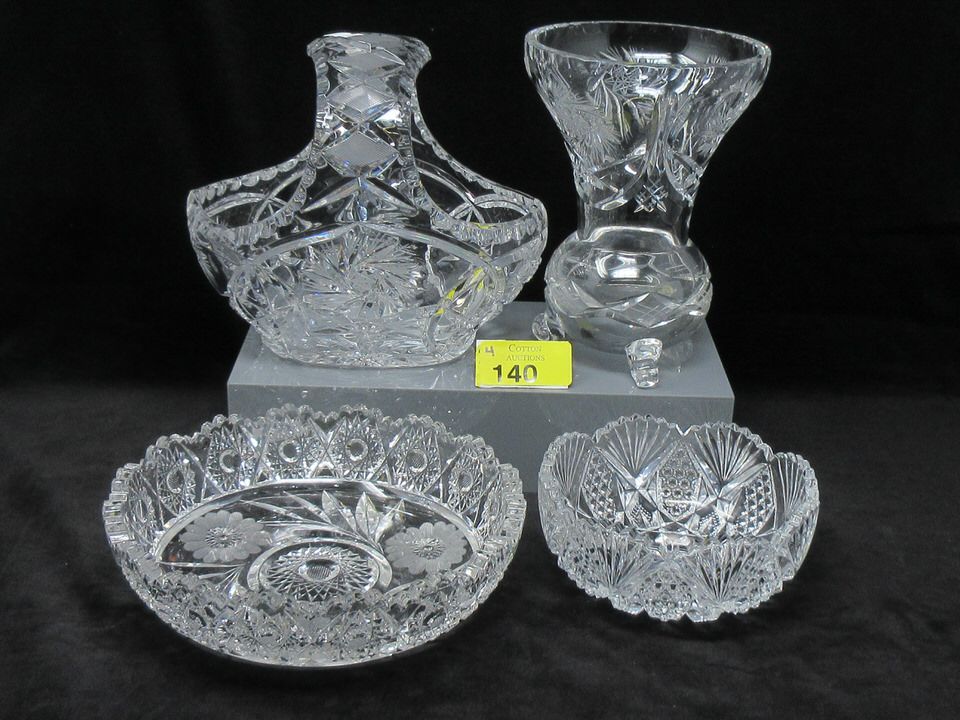 Vase is 5" diameter x 7.5" tall. Also includes handled basket vase and 2 bowls.