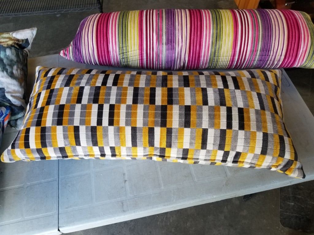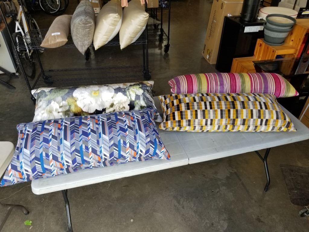 4 DECORATIVE PILLOWS - APPROX 3 FOOT LONG