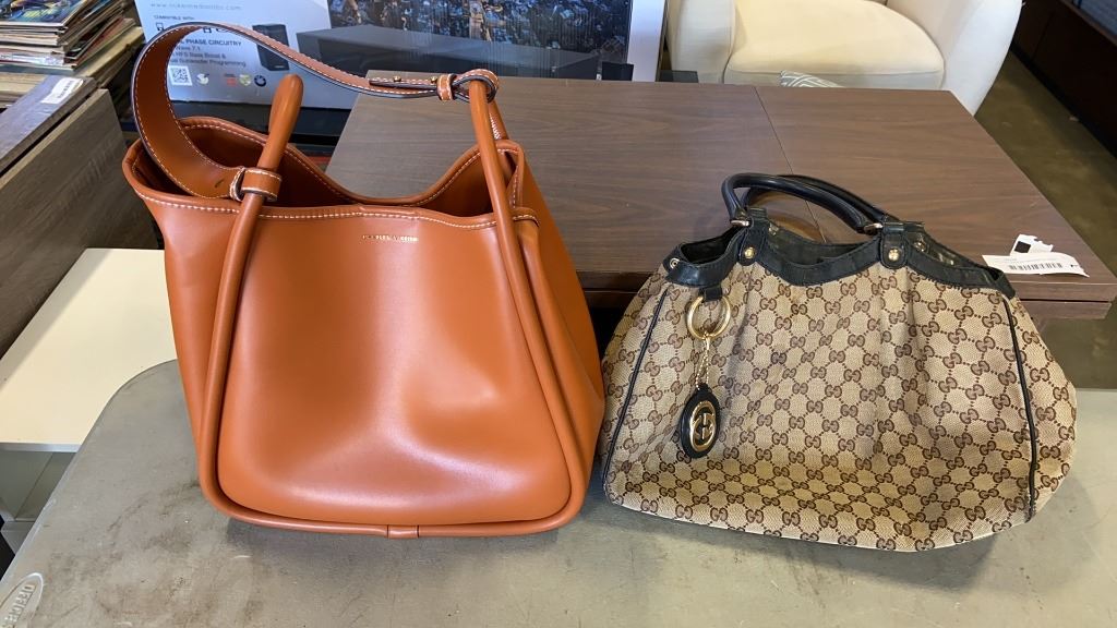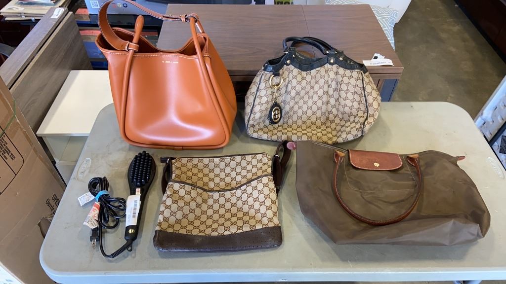 4 DESIGNER LADIES BAGS AND HEAT BRUSH