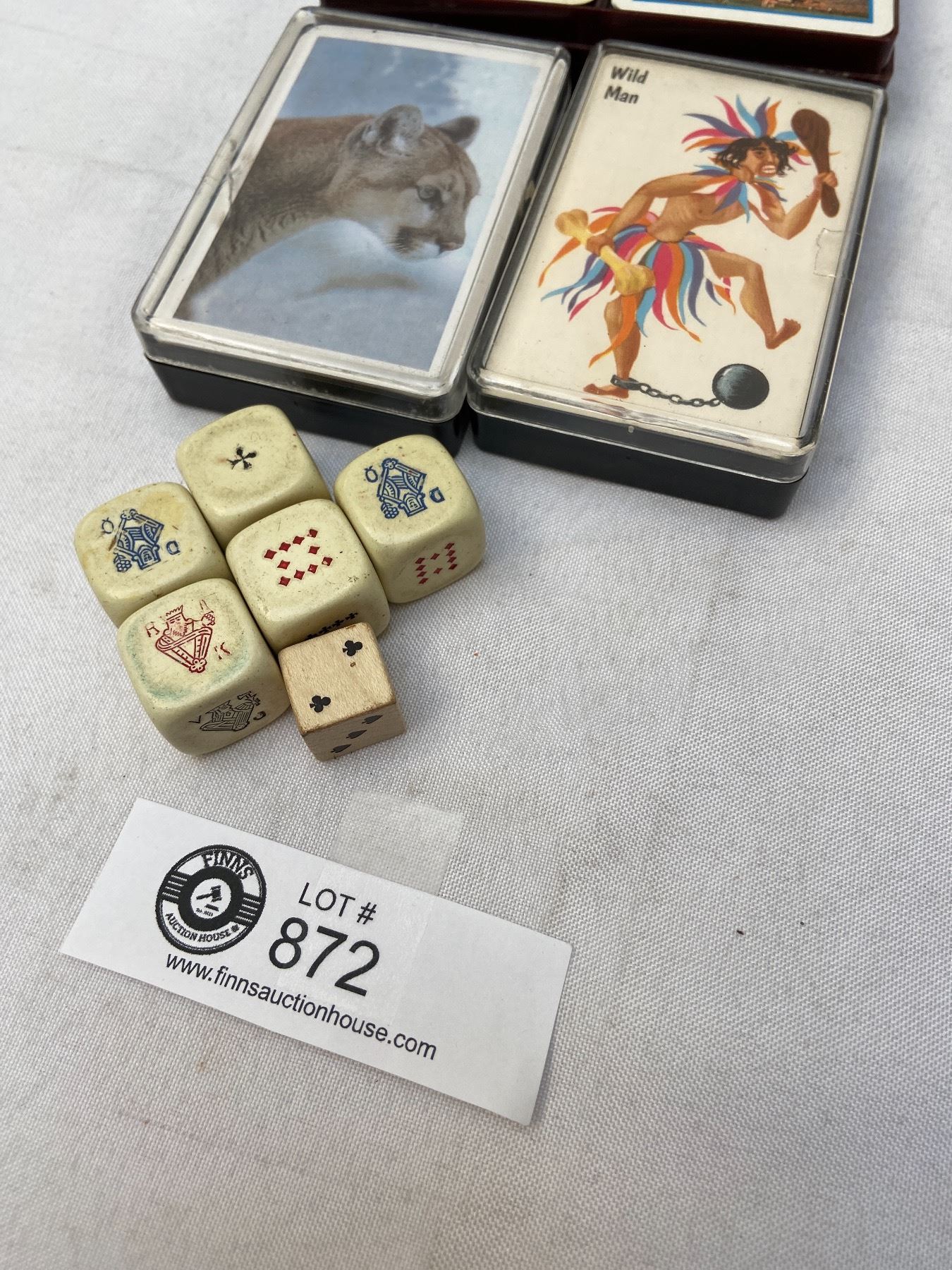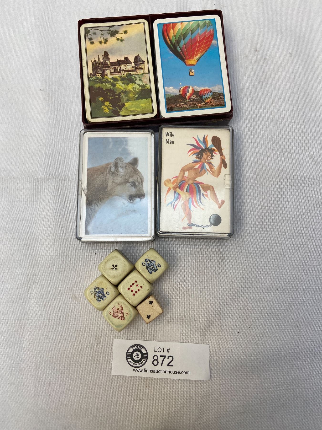 4 Decks of Vintage Playing Cards and Wooden Dice