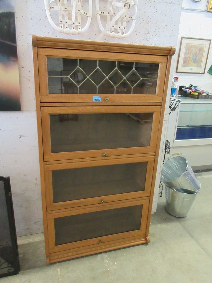 Top door is leaded glass. 14" x 31" x 57" tall.