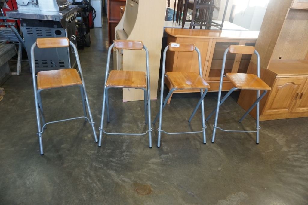 4 FOLDING METAL AND WOOD STOOLS