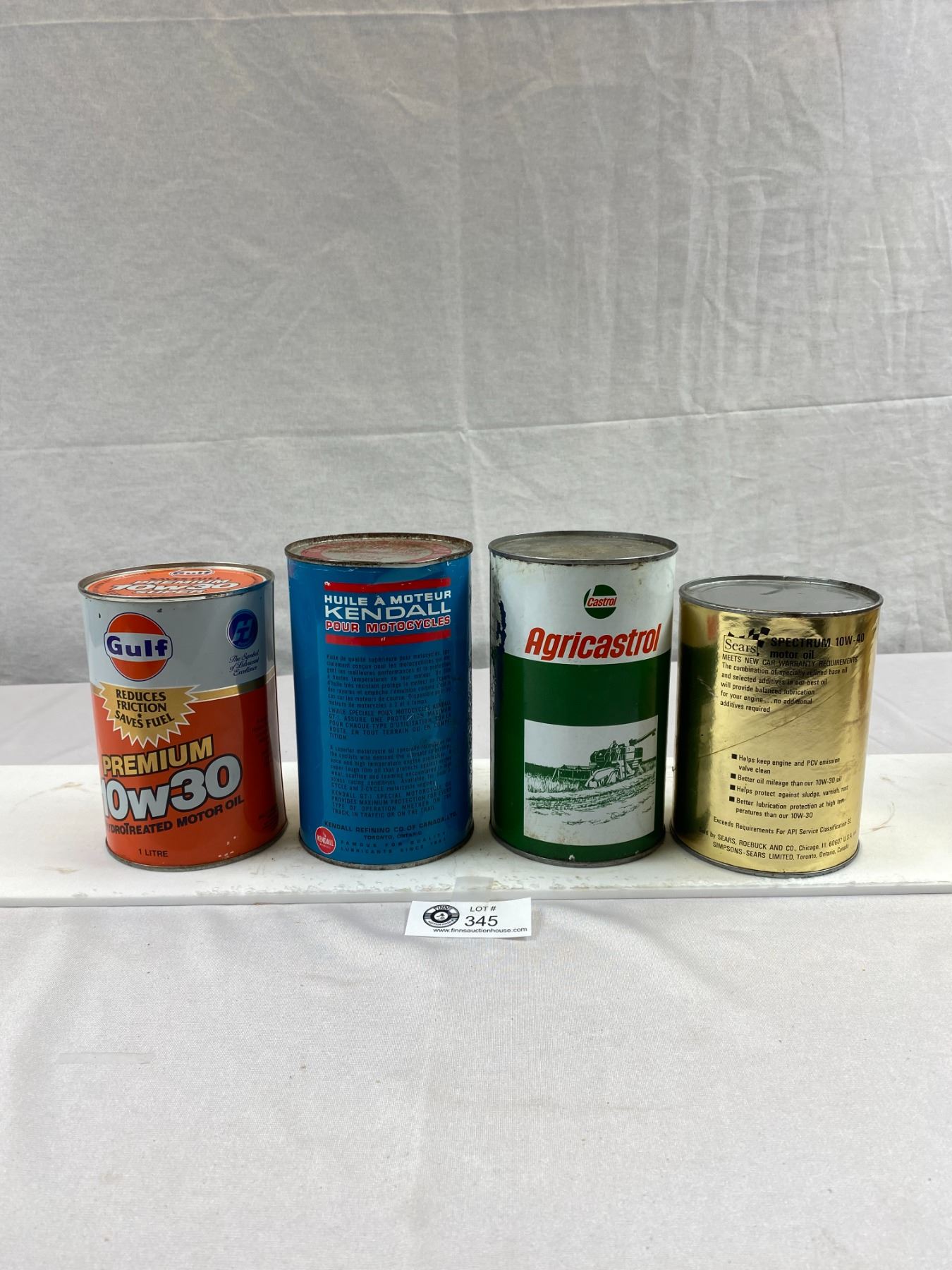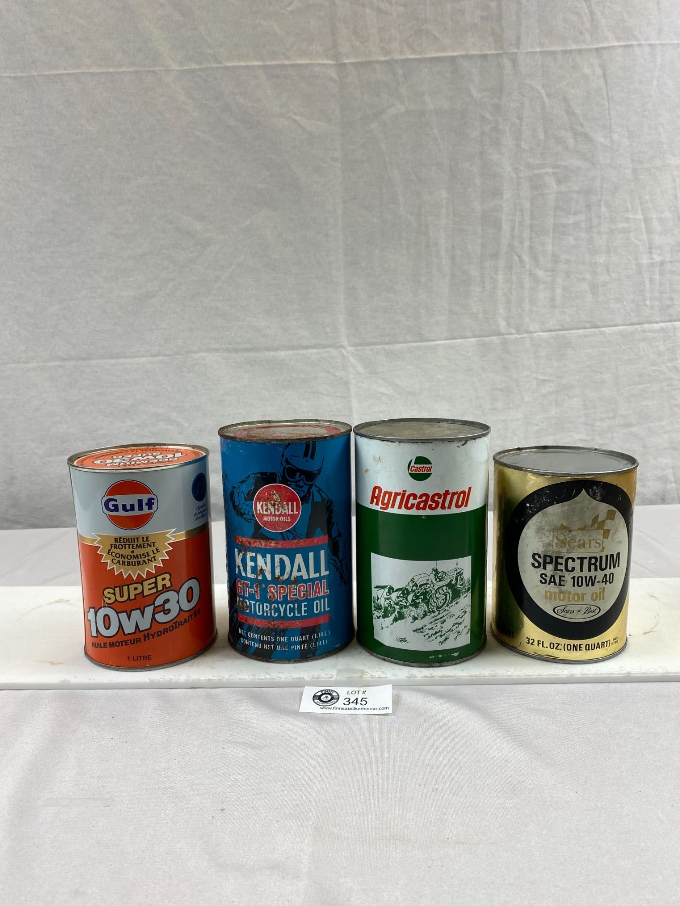 4 Full Vintage Tins Of Motor Oil, Agricastrol, Gulf Premium, Kendal GT-1 And Sears Spectrum