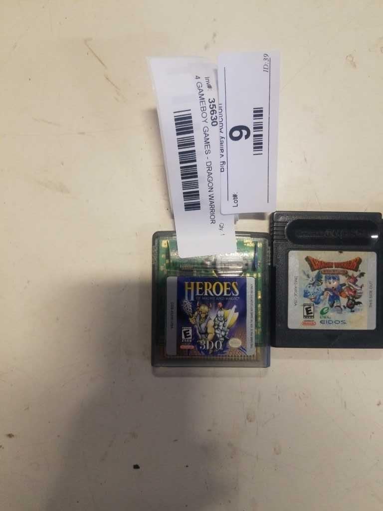 4 GAMEBOY GAMES - DRAGON WARRIOR 1 AND 2, MONSTERS AND MONSTERS 2 AND GAMEBOY COLOR HEROES OF MIGHT AND MAGIC