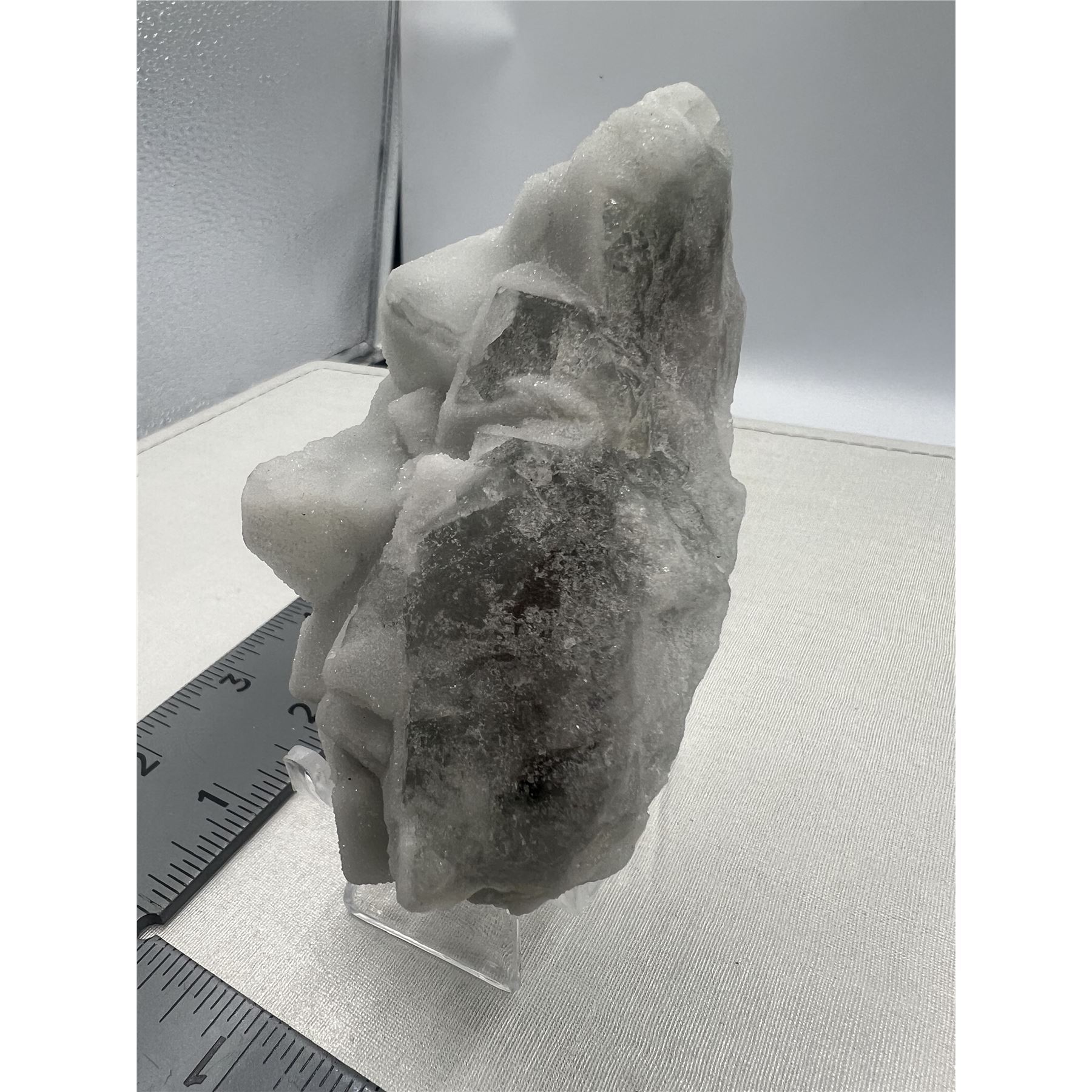 4 INCH LIGHT GREEN FLOURITE SPECIMEN COATED WITH SUGAR CALCITE
