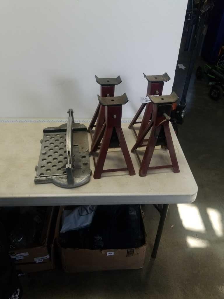 4 JACK STANDS AND TILE CUTTER