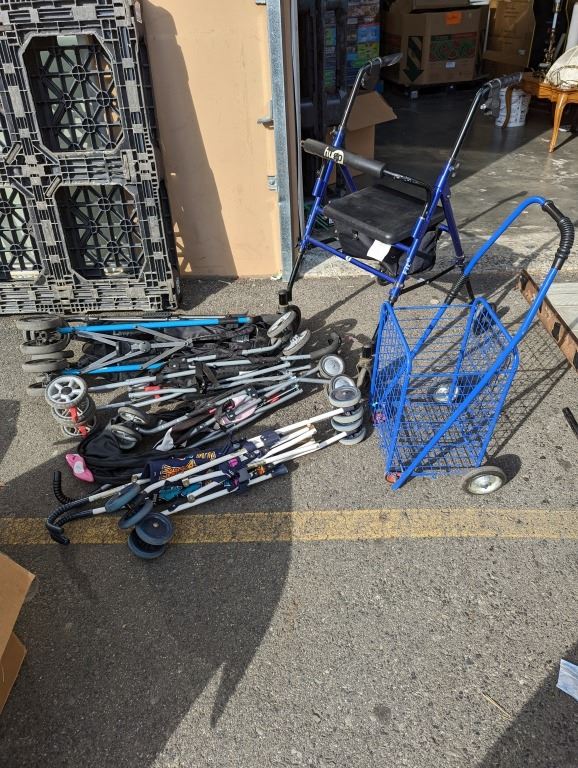 4 LOST PROPERTY STROLLERS, PERSONAL SHOPPING CART AND FOLDING WALKER