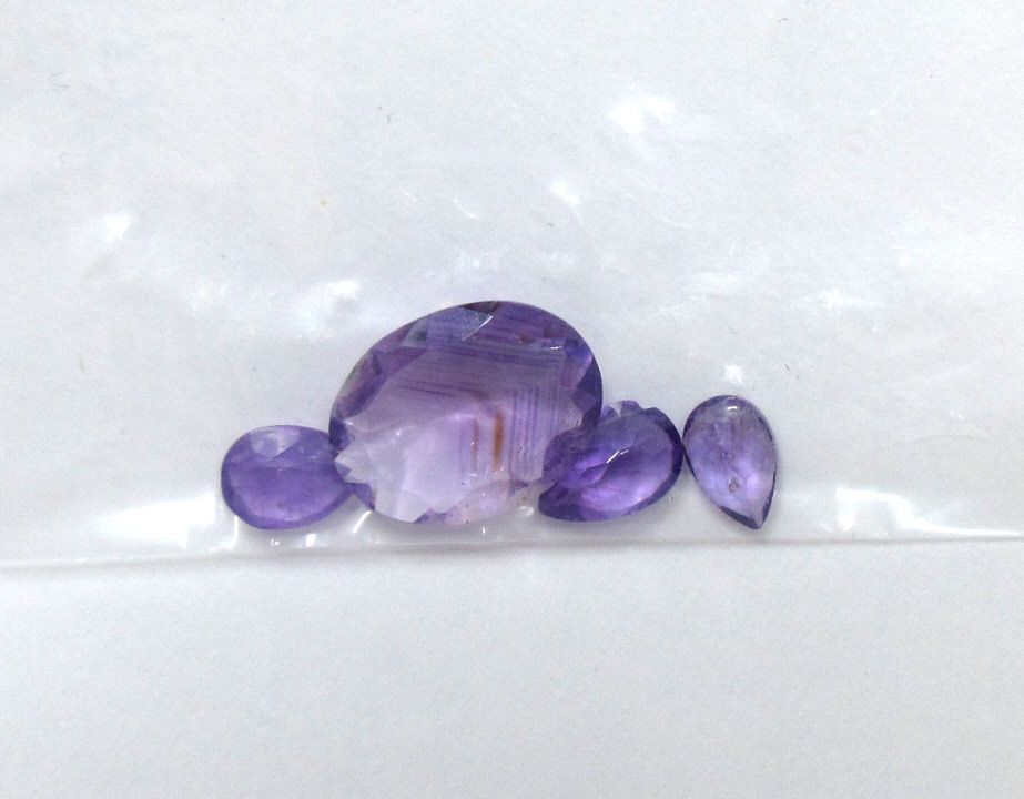 1 Large Oval Cut & 3 Pear Cut Amethyst Gemstones.