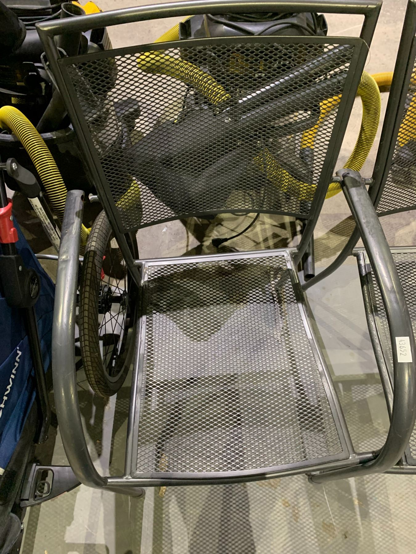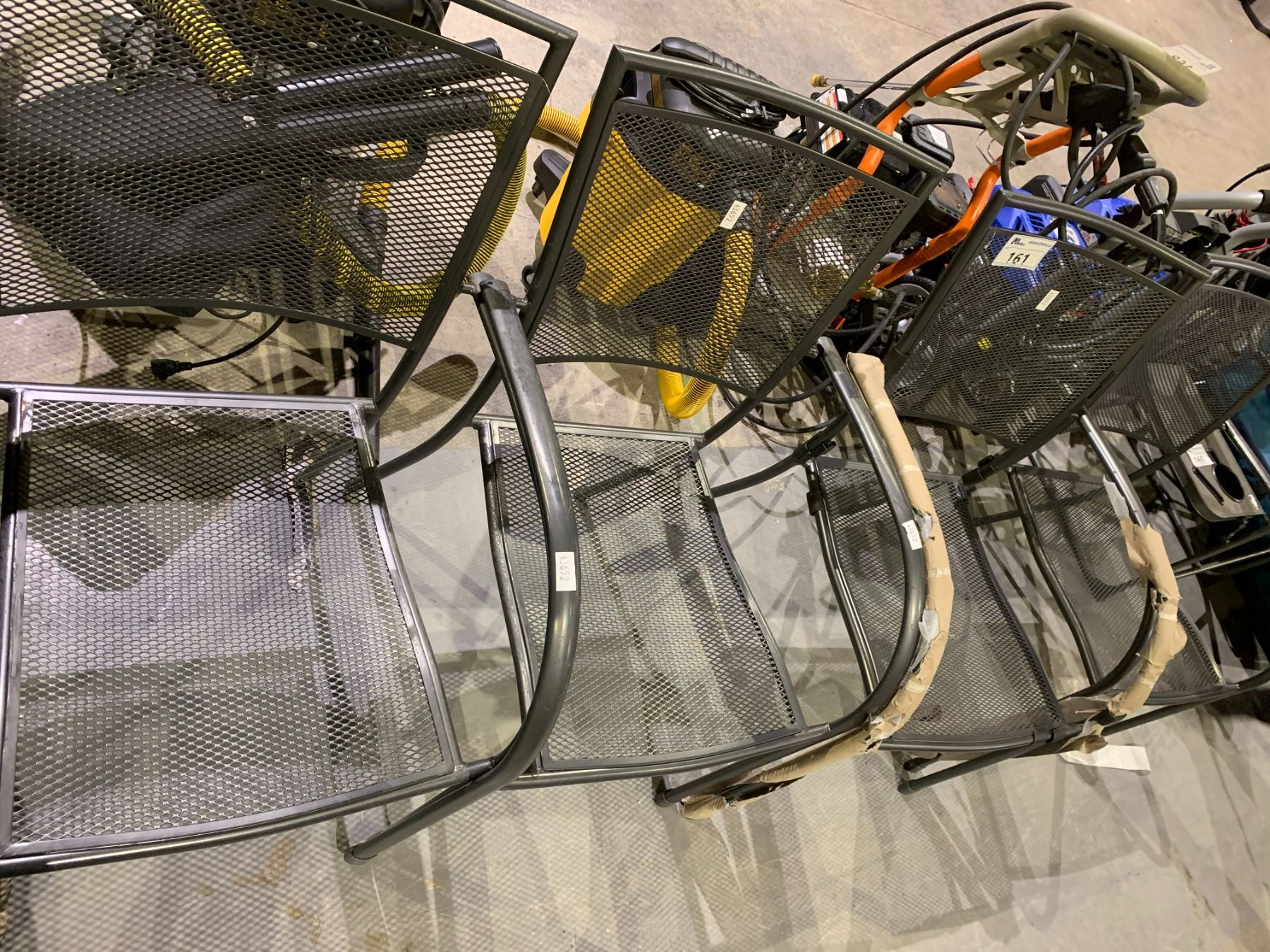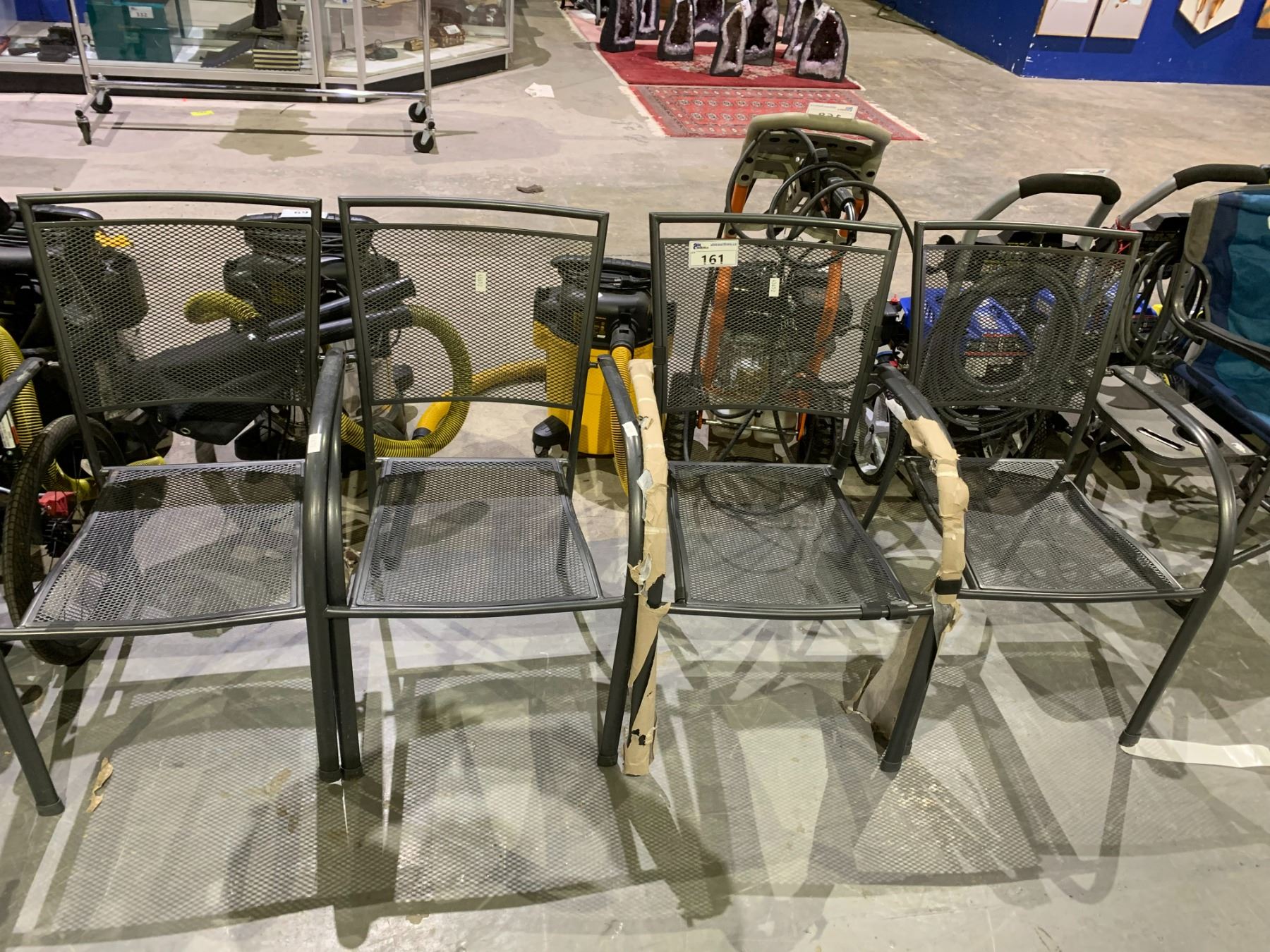 4 MATCHING METAL PATIO CHAIRS (BROKEN ARMS)
