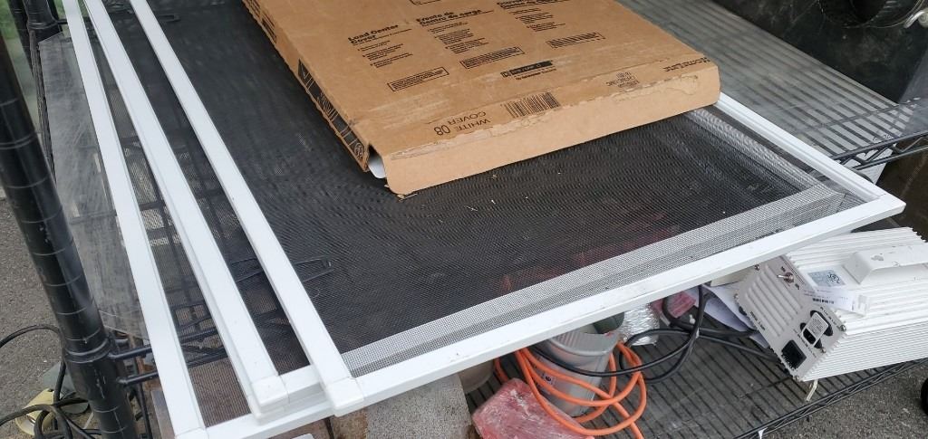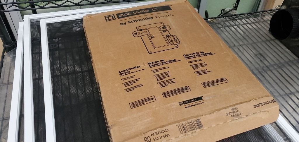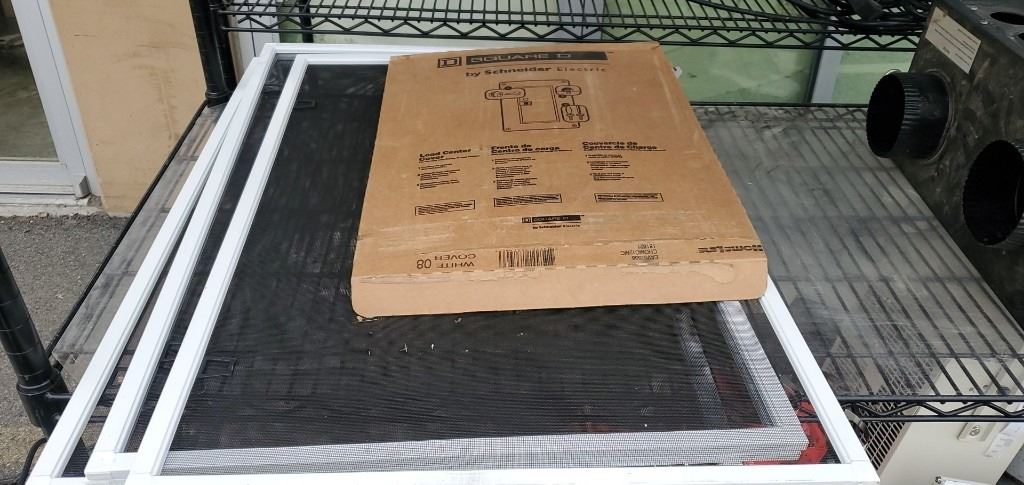 4 MESH 21" X 32" WINDOW SCREENS AND NEW LOAD CENTER COVER