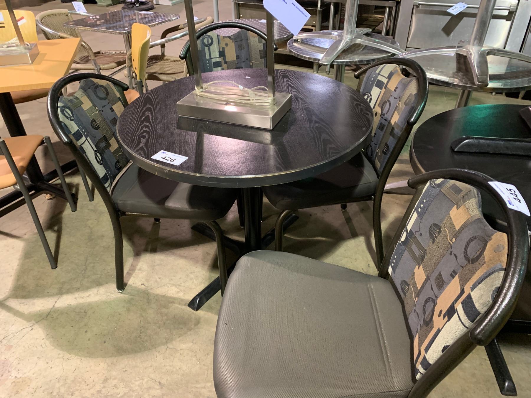4 METAL FRAMED PATTERNED BACK PADDED STACKING RESTAURANT CHAIRS