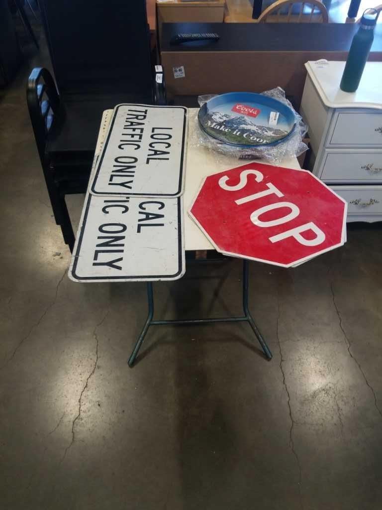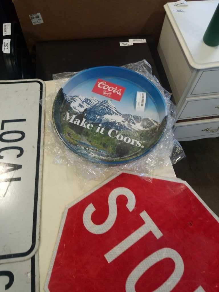 4 METAL STREET SIGNS WITH METAL COORS TRAYS