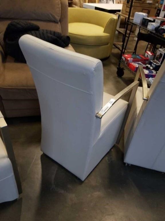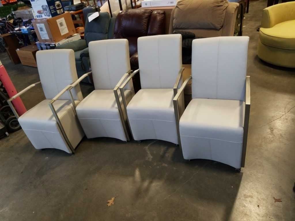4 MONTANA WHITE LEATHER ROLLING DINING CHAIRS
