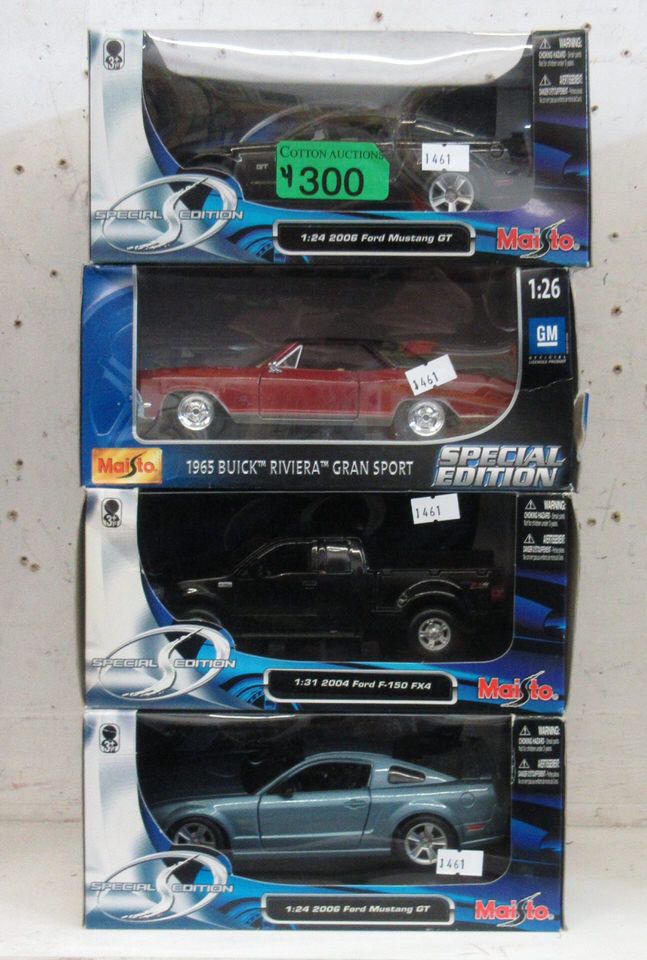 1965 Buick Riviera, Ford F-150 and 2 x 2006 Ford Mustangs. Original Boxes.